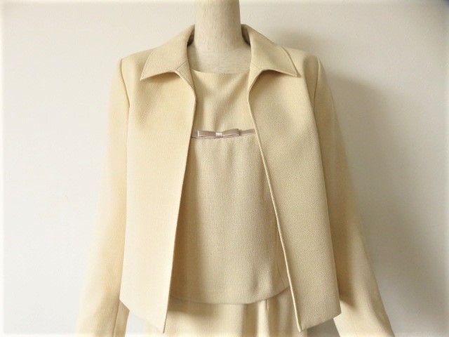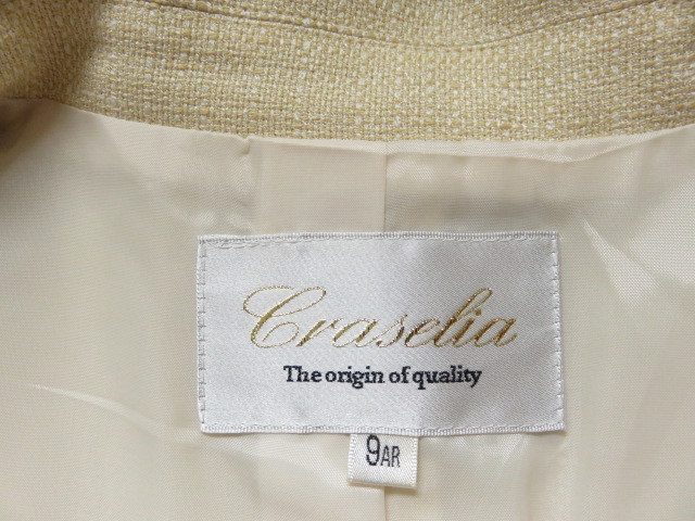 ■新品同様 上質美品【 Craselia 】クラセリア 3点セット スーツ 9号 M クリーム色 セレモニースーツ ママスーツ s947