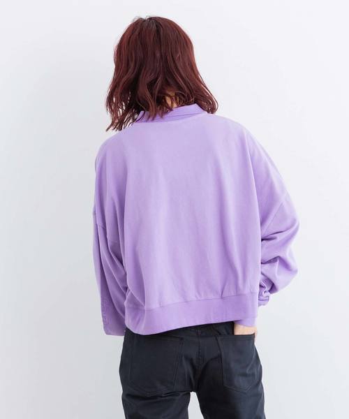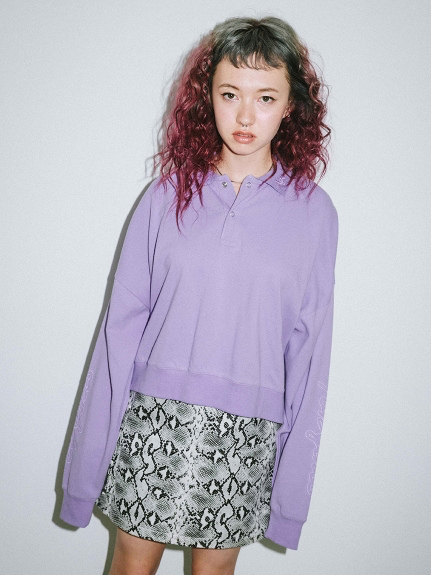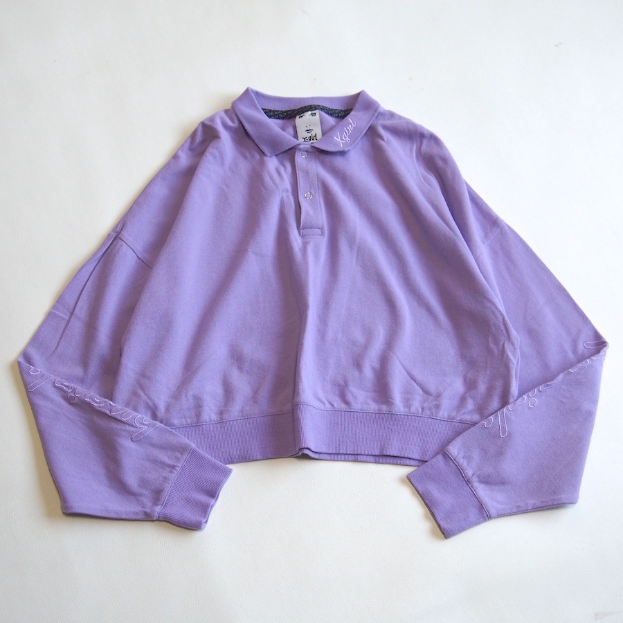 鹿の子素材の長袖ポロシャツです。 袖と襟にX-girlのブランド刺繍入り、ドロップショルダー&ショート丈のややゆったりとした身巾がメンズライクな1枚です。