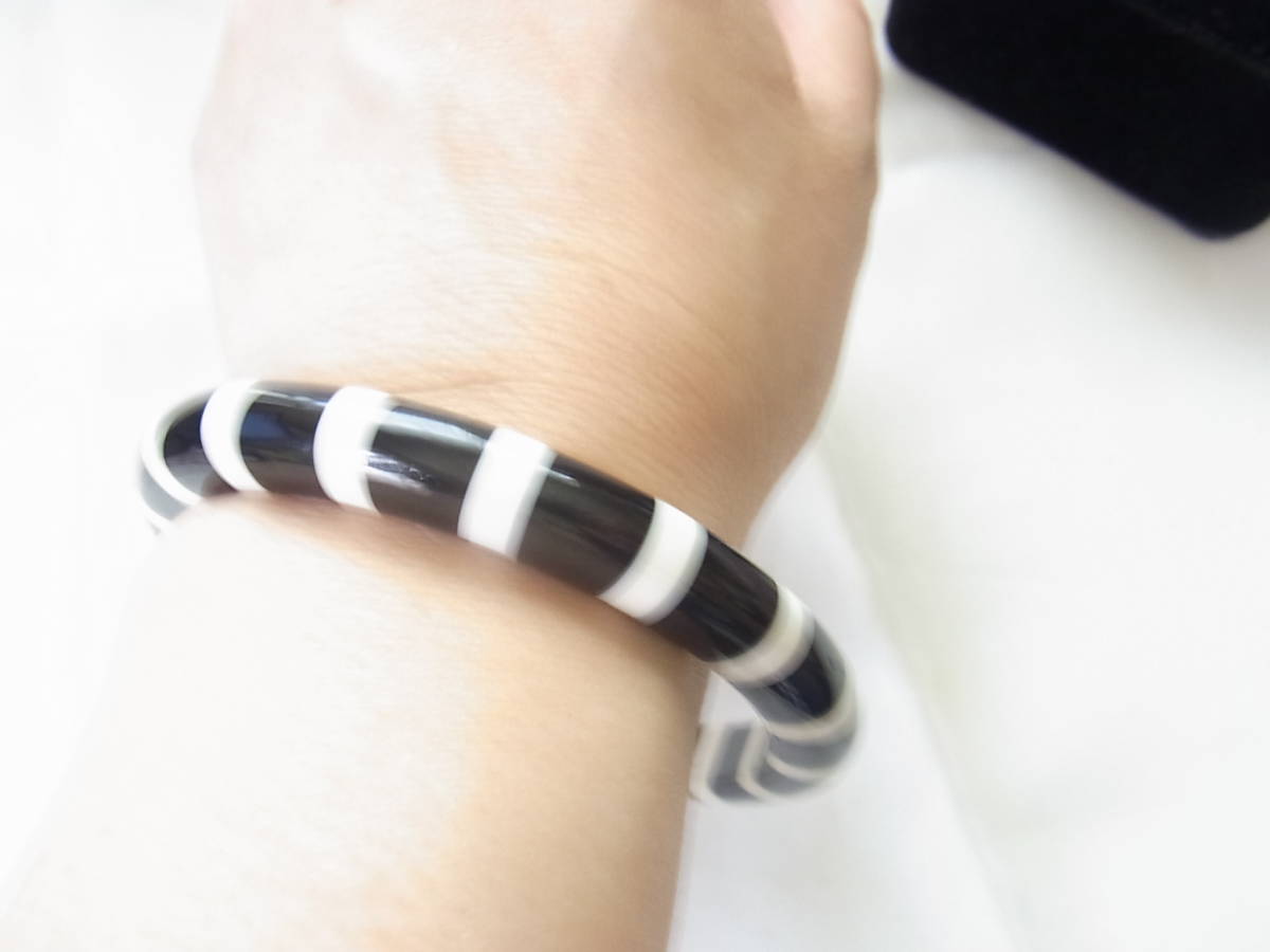 黒と白のモノトーンカラー 個性的デザイン ブラック×ホワイト シックな印象ながらも人目を引く バングルブレスレット▽