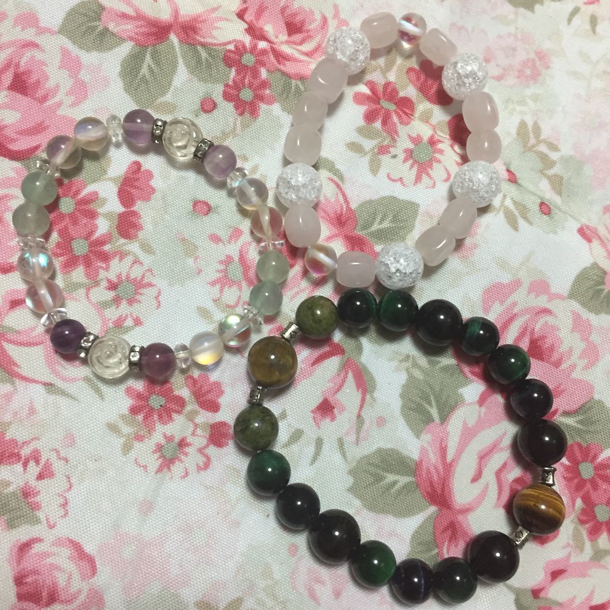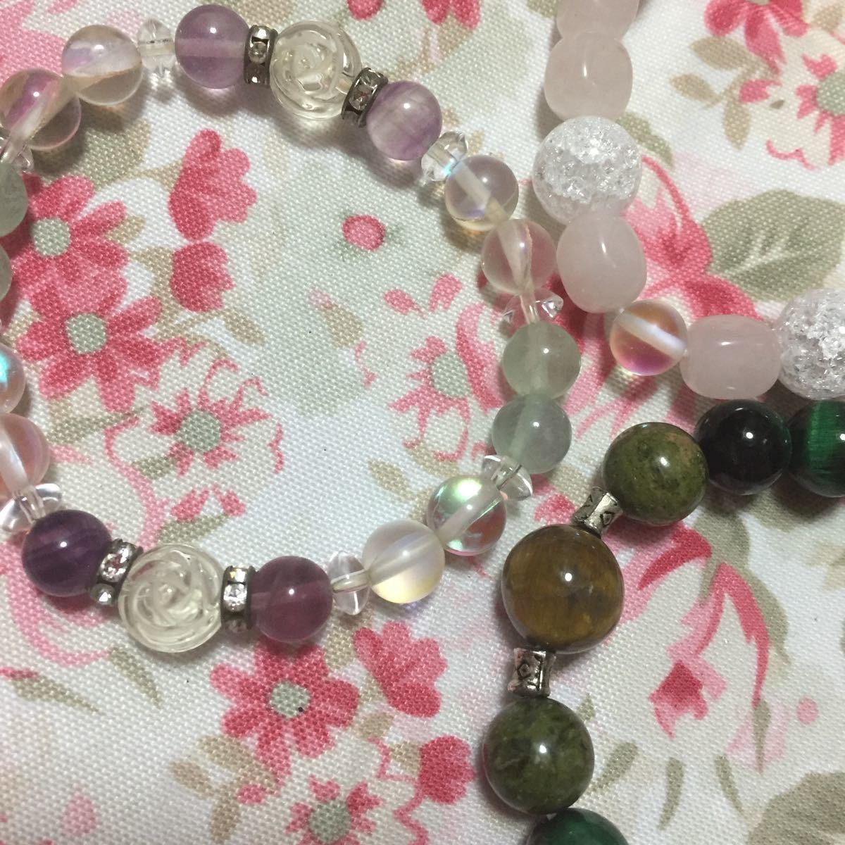 パワーストーンブレスレット タイガーアイ グリーンタイガーアイ フローライト ローズクォーツ 浄化済み