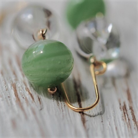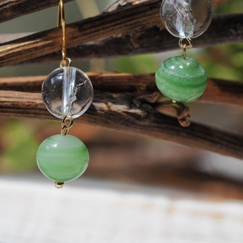 ベネチアンガラスにホワイトカラー水晶を使ったシンプルでも印象的なピアスです。