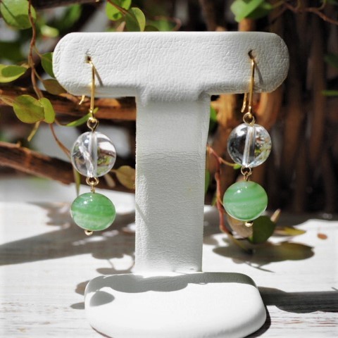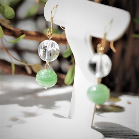 透明度高いホワイト水晶は耳元で揺れ光を当たると、お顔まわりを華やかにしてくれます。