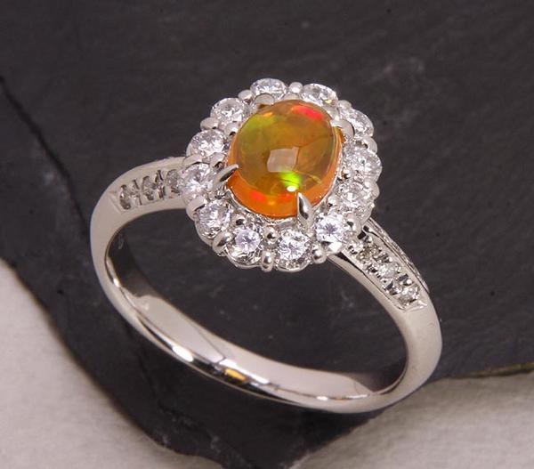 オパールの遊色はオレンジを中心にグリーン、イエロー、