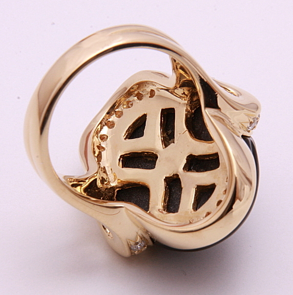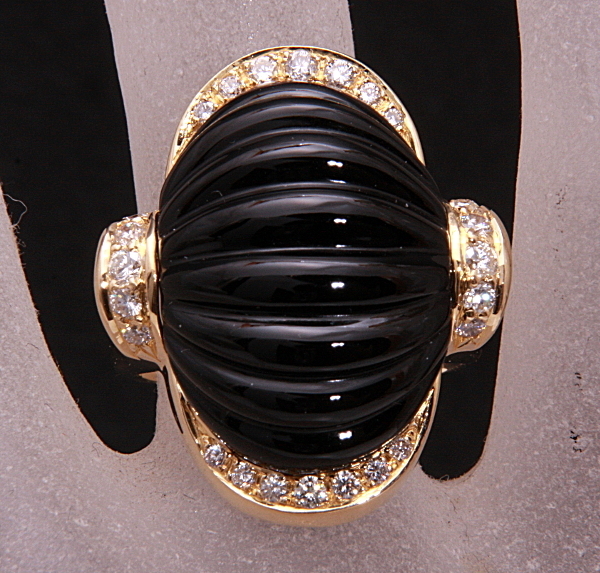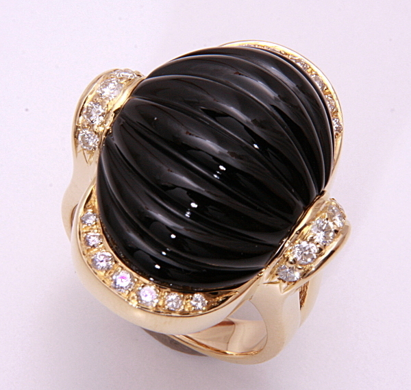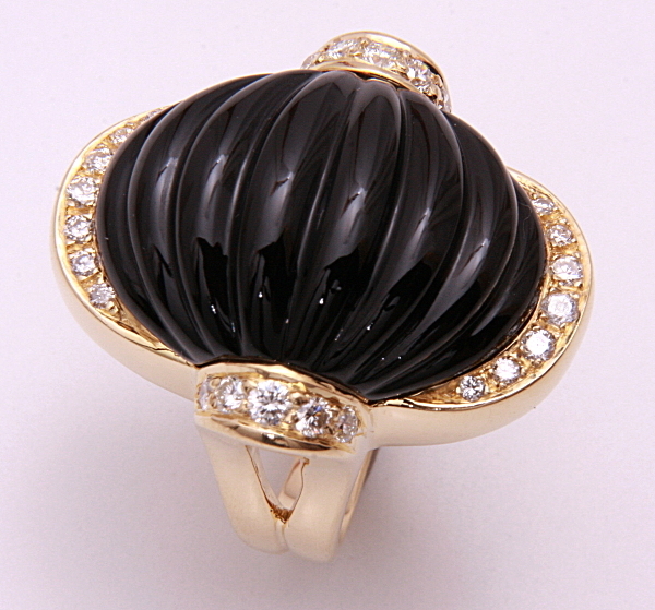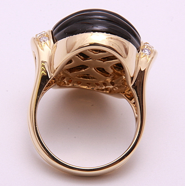 k18★天然オニキス+ダイアモンドデザインリングです。