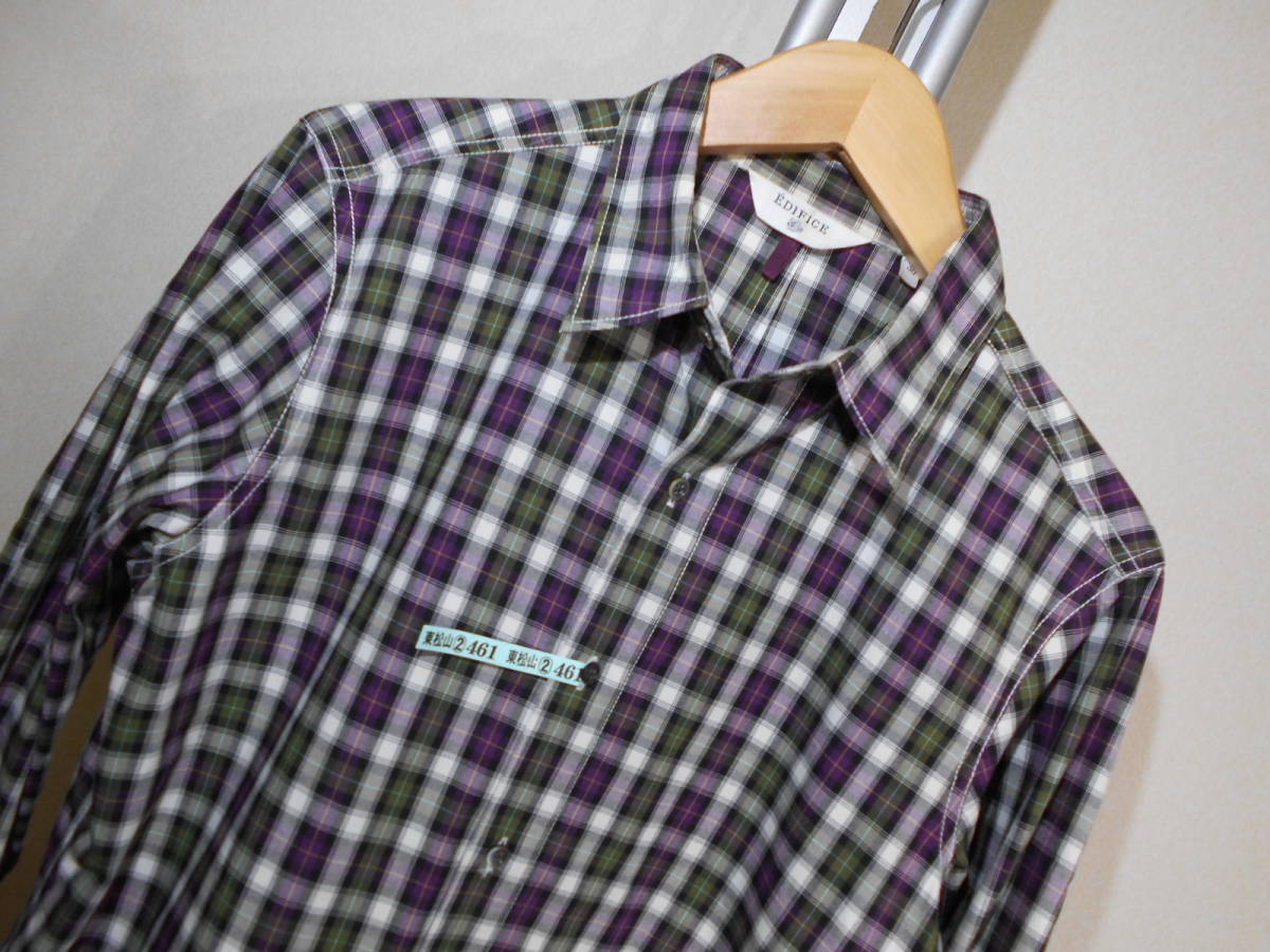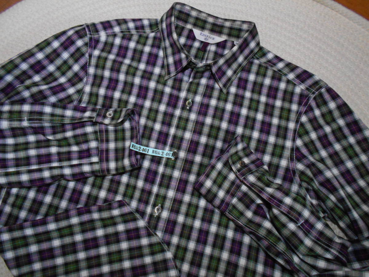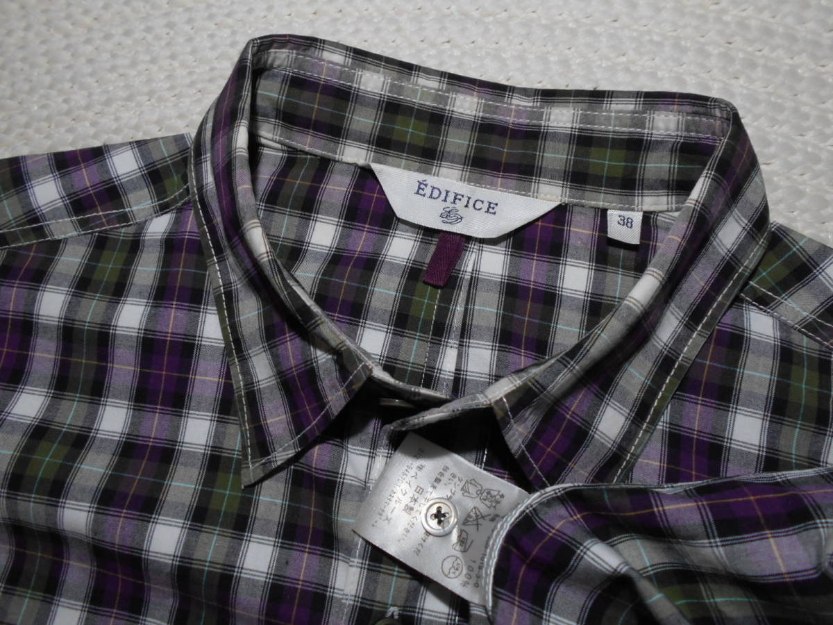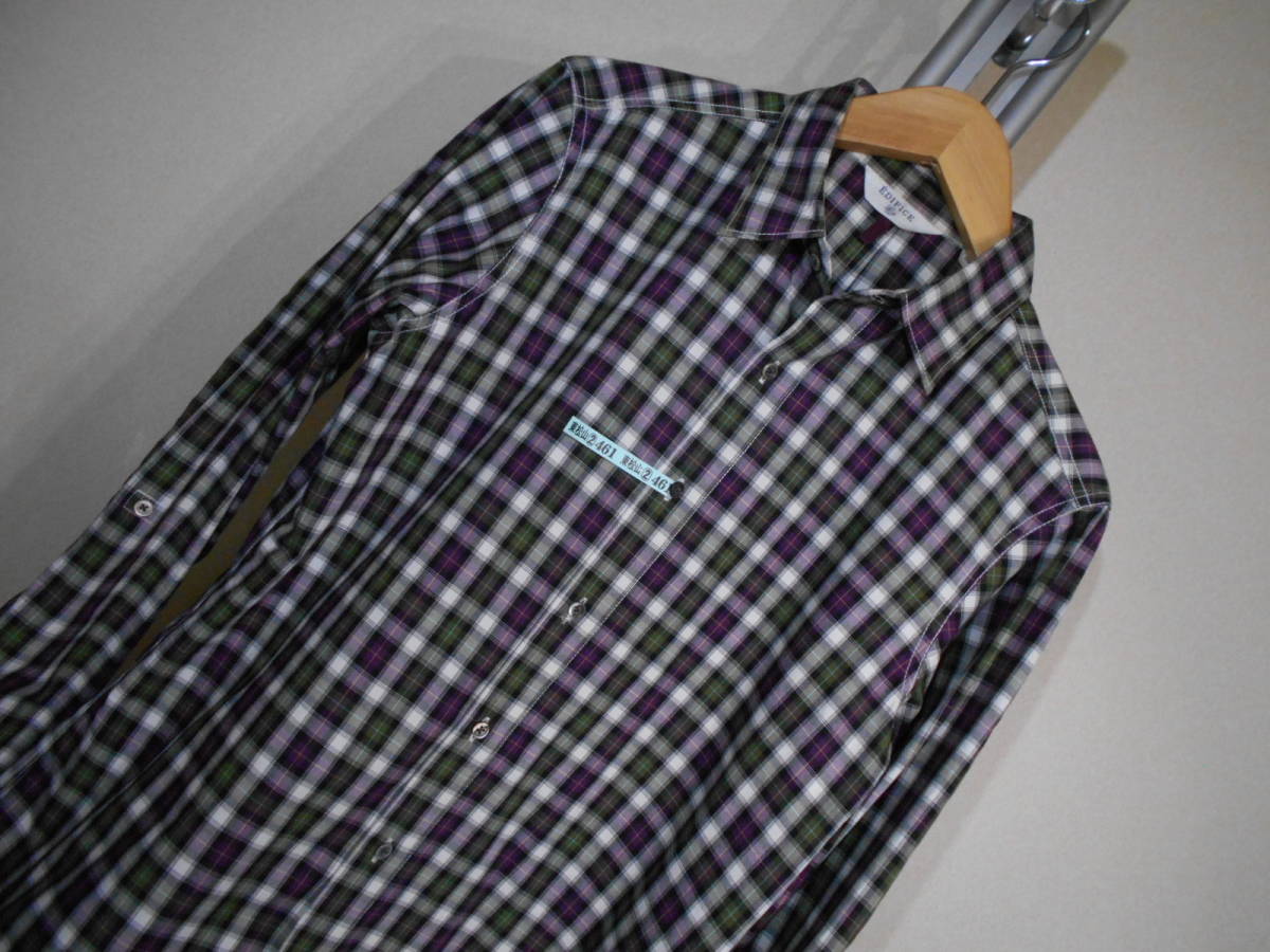 | U667美品!■エディフィス★白*黒紫他チェック★袖ロールシャツ■38 | |||||||||||