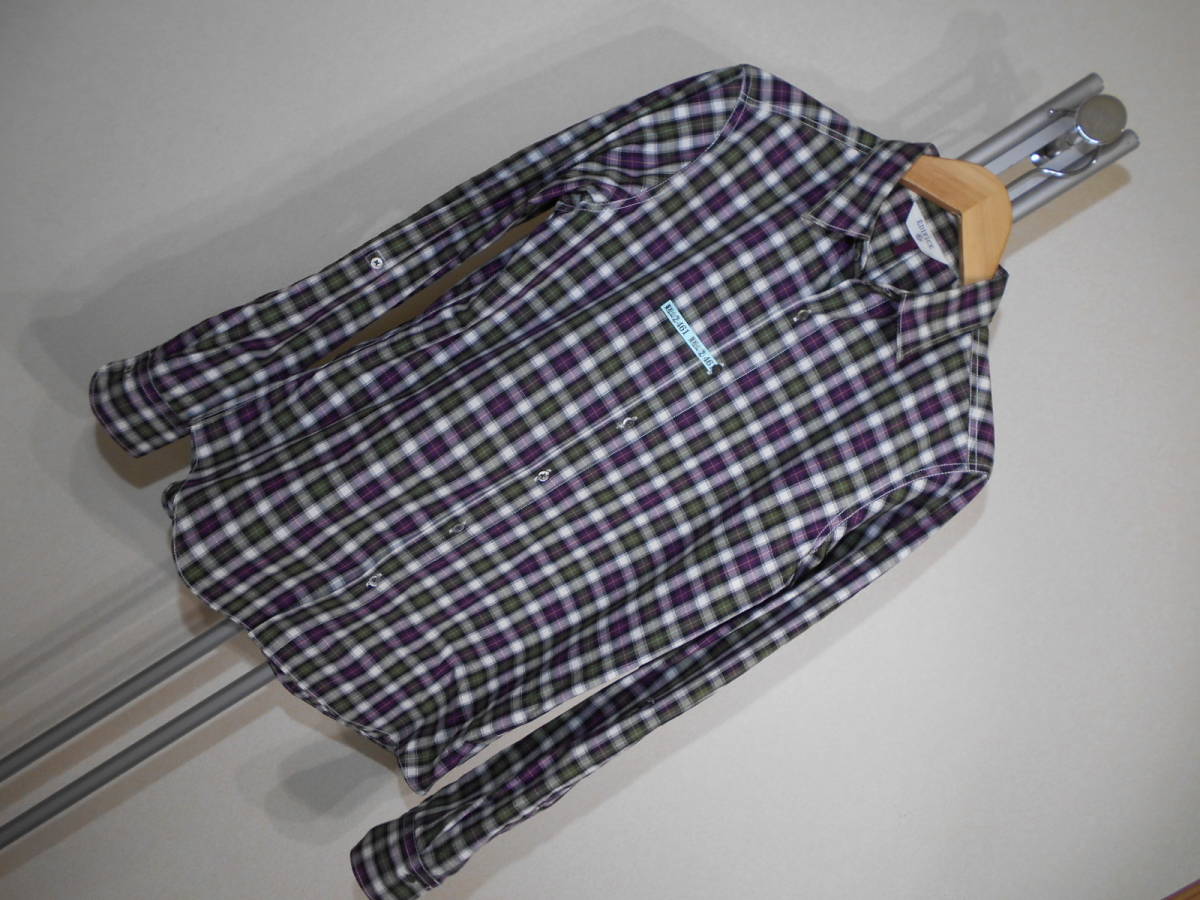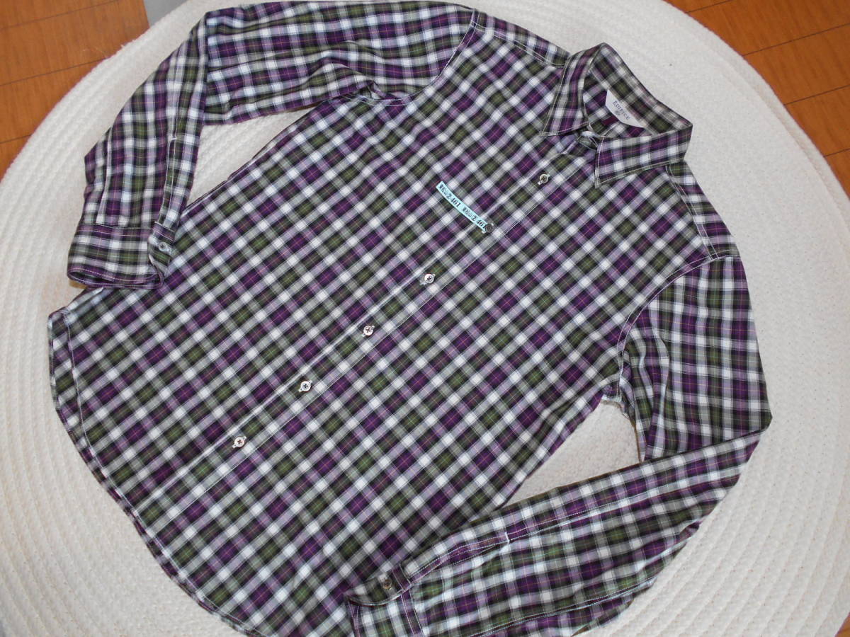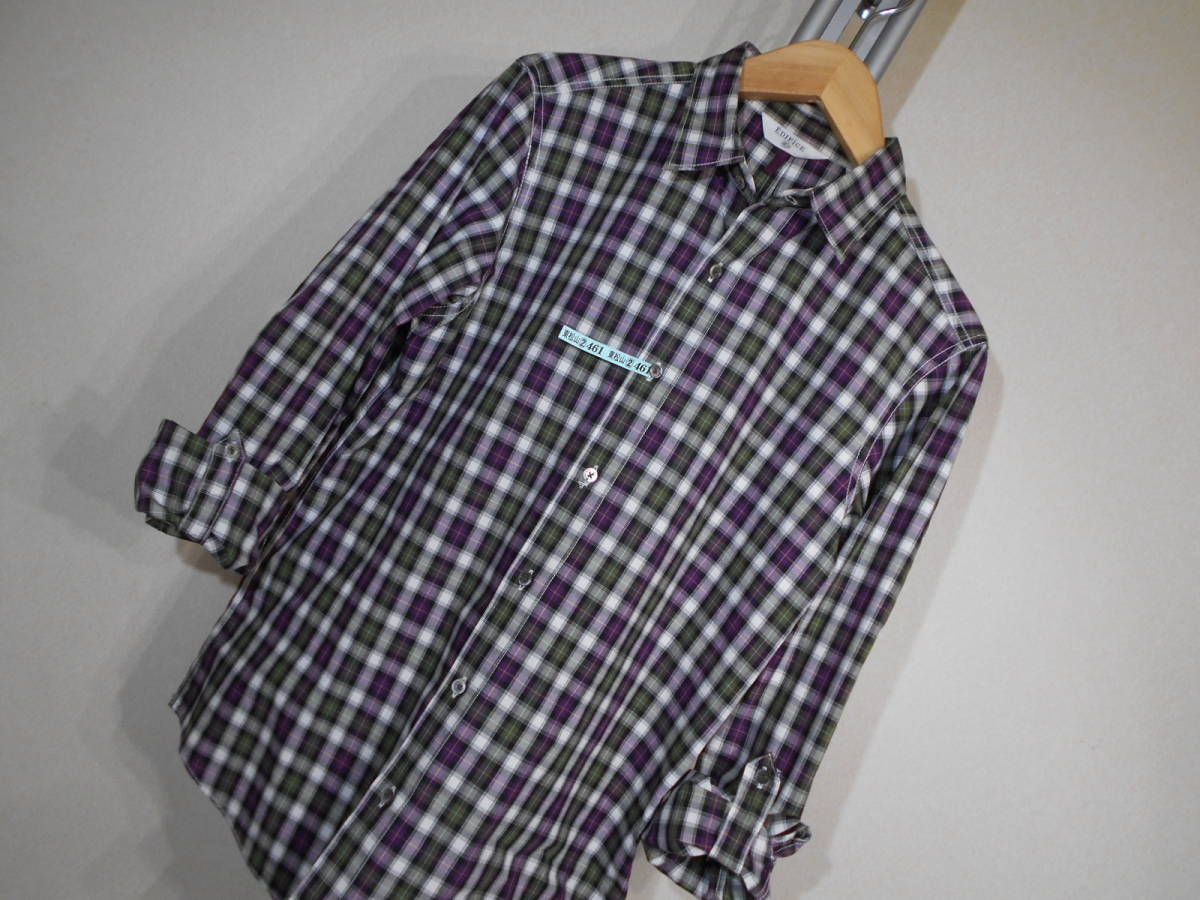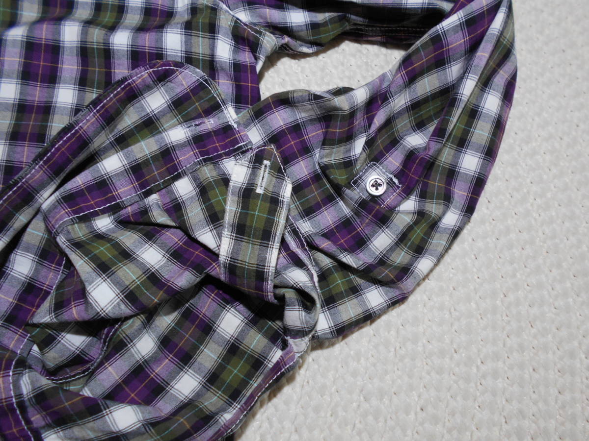 | U667美品!■エディフィス★白*黒紫他チェック★袖ロールシャツ■38 | |||||||||||