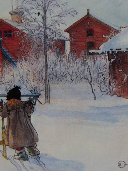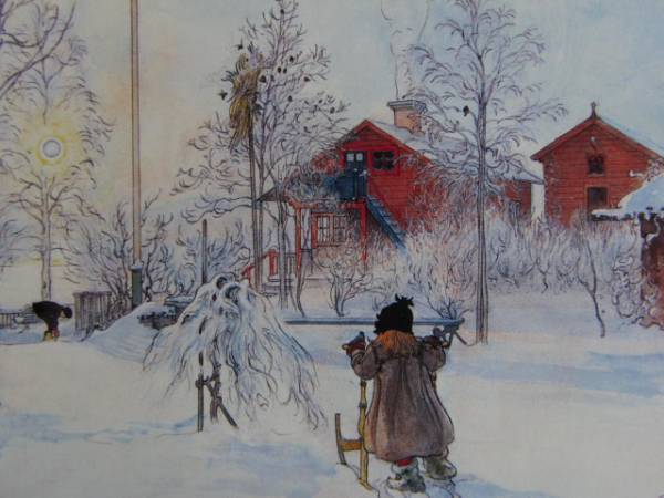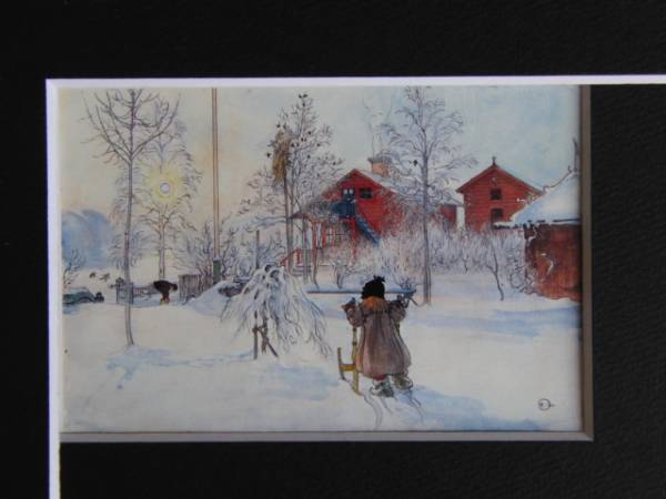 カール・ラーション、中庭と洗濯小屋(《わたしの家》より)、希少画集画、新品額装付、状態良好 送料無料、yoshi
