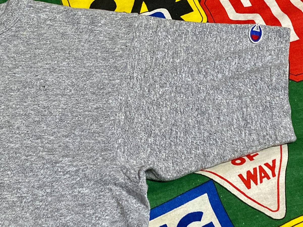 ☆珍しいパターンの3列染み込みプリント☆Made in USA製アメリカ製Championチャンピオンビンテージ杢霜降りTシャツ80s80年代トリコタグM