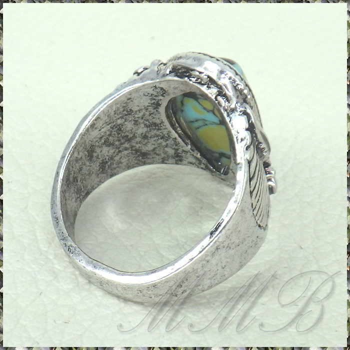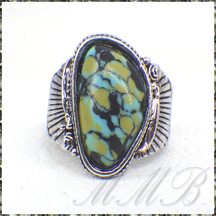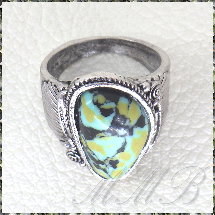 [RING] Antique Silver Blue Stone アンティークシルバー加工 Blue & Black 斑模様ストーン ボヘミアンスタイル リング 11号 【送料無料】