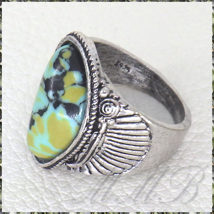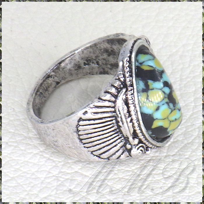 Antique Silver Blue Stone アンティークシルバー加工 Blue & Black 斑模様ストーン ボヘミアンスタイル リング です。