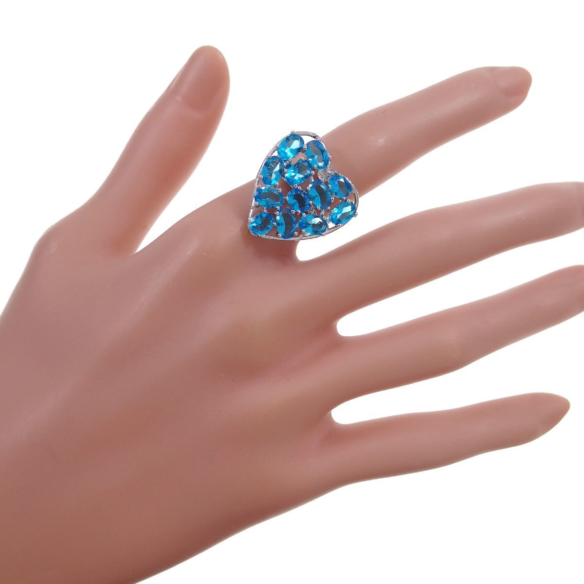A6216◆【925 * シルバー製】◆ ハート型フェイス * ブルートパーズ色 水色系ストーン ◆ 新品リング * 指輪 サイズ約10号~11号 ◆
