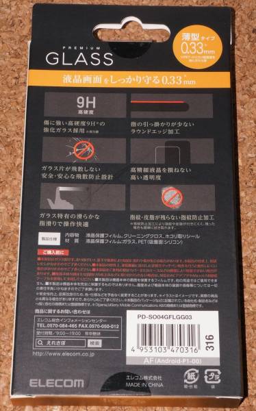ELECOM Xperia A4 SO-04G 液晶保護リアルガラスフィルム 0.33mm 9H 新品・未開封です。