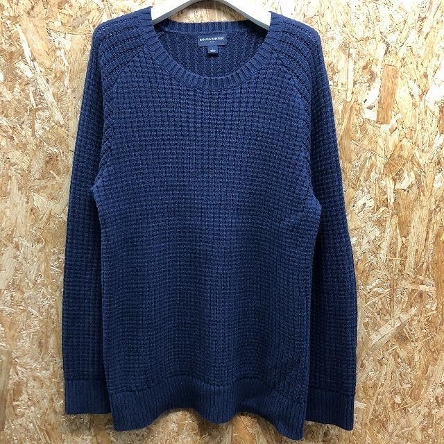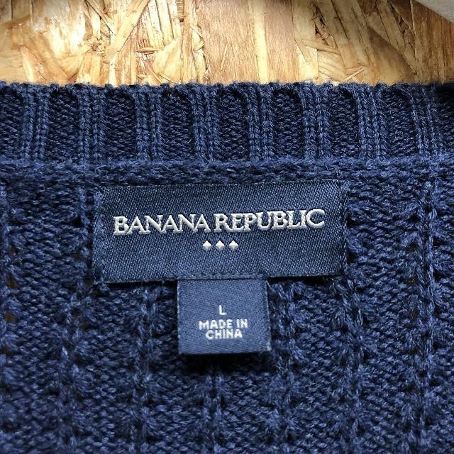 | 商品タイトル | BANANA REPUBLIC バナナリパブリック Lサイズ メンズ ローゲージニット セーター リブストライプ ラグラン 長袖 綿100% ネイビー 紺 |