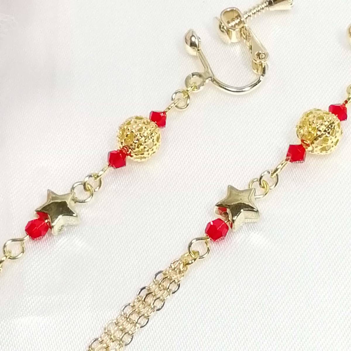 ★商品内容★ ★ライトシャムとゴールドチェーンタッセルのハンドメイドイヤリング★タッセル/上品/ゴージャス/ゴールド/ライトシャム/スワロフスキー/赤 ゴールドパーツと赤いビーズを組み合わせた、 ゴージャスで上品なロングイヤリンです*・。*・.**.・。**.・。*・**。・ 線の細いチェーンのタッセルが、 さらさらと襟元で煌きながら揺れて 優しい女性らしさを印象付けます*・。*・.**.・。**.・。*・**。・ 普段使いはもちろん、お出掛けや オシャレのワンポイントにも最適です♪・。**.・。*・**。・. 【素材】 スワロフスキー5328ライトシャムルビー(オーストリア製)3mm スワロフスキー5000ライトシャムルビー(オーストリア製)3mm メタルパーツスターゴールド6mm 透かしメタルビーズゴールド6mm 小粒チェーンゴールド カンより垂れ下がる長さは、約7.3㎝です。 Eー621 ★注意事項★ ***~ご購入前に必ずお読み下さい~*** *・*・*落札後について*・*・* *落札後4日以内にお手続き、ご連絡が無い場合は落札者都合で削除致します。 *発送日指定・ご入金の予定が1週間以上先をお考えの方は、入札の前に質問よりご連絡くださいませ。 予めご了承の上、ノークレーム・ノーリターンでお願い致します。 *・*・*商品について*・*・* *一点一点心を込めて作っておりますが、手作りなため多少の歪み等あるかもしれません。 手作りの味わいと、世界で一つだけの作品とお考えいただければ幸いです。 *デリケートな商品ですので、強く引っ張ったりすると破損する事もあります。 お取り扱いにはご注意ください。 *ご覧のPC、スマホによっては画像と実物の色味が多少異なる場合があります。 *基本イヤリング金具は跳ね上げネジ付き金具にて作成しております。 **ご希望によりピアスへの変更も承っております。 【フックピアス…無料/キャッチピアス…別途追加料金120円】 *その他…樹脂ノンホールピアス(無料)・カン付き樹脂ノンホールピアス(別途追加料金20円)にも変更をお受け致します。 ~ご注文の際にメッセージ欄よりお申し付け下さい~ 尚、金具変更のご希望が無い場合は、掲載された写真の金具にてお送り致します。 *金属アレルギーへの対応はしておりませんので、ご心配な方はご遠慮下さいますようお願い致します。 *永くご愛用頂くために、ご使用後は柔らかい布等で軽く拭いてください。 *・*・*プレゼント用梱包のご要望もお受けいたします*・*・* *その際は、梱包費用が別途で必要となりますのでご注意ください。 また、ご希望の梱包タイプによって、発送方法が変わりますので、送料が別途必要となります。 プレゼント用梱包タイプ 【袋→100円】 発送方法【クリックポスト(送料無料)】 プレゼント用梱包タイプ 【箱→200円】 発送方法【レターパックプラス(別途520円)】 袋タイプは【合計100円の追加料金】、箱タイプは【合計720円の追加料金】となります。 ◆ご希望の場合は、必ず商品ページをウォッチリストに登録した上で落札前に質問にてお問合せ下さい。◆ ◆ご希望を承り次第、一度出品を取り消し、プレゼント用梱包費用、送料などを追加した金額へ変更し、再出品致します。◆ *再出品後に再度検索して頂く手間が省けますため、プレゼント梱包をご希望の場合は必ずウォッチリストへのご登録をお願い致します。 金額変更後の再出品から3日以内に落札されなかった場合、誠に勝手ながら購入する意思がないとみなしまして、元の金額へ修正致します。 また、修正後、再度プレゼント用梱包のご希望のお問い合わせを頂きましても、お断りをさせていただきますのでご注意ください。 ご不明な点がございましたら、落札前に質問よりお願い致します。 ***ご質問について*** *ご購入前にお願い致します。 日中は仕事をしておりますので、ご返事が直ぐに出来ない場合がございます。 出来る限り早い対応を心がけますが、ご了承ください。 また、発送までには、お振込み確認後、翌日の発送を心がけておりますが、仕事の都合により2~3日程かかる場合がございます。(その際にはナビにてご連絡いたします) お急ぎの場合は、極力対応いたしますが、場合によっては対応致しかねる事もあります。ご了承下さいませ。 | |||