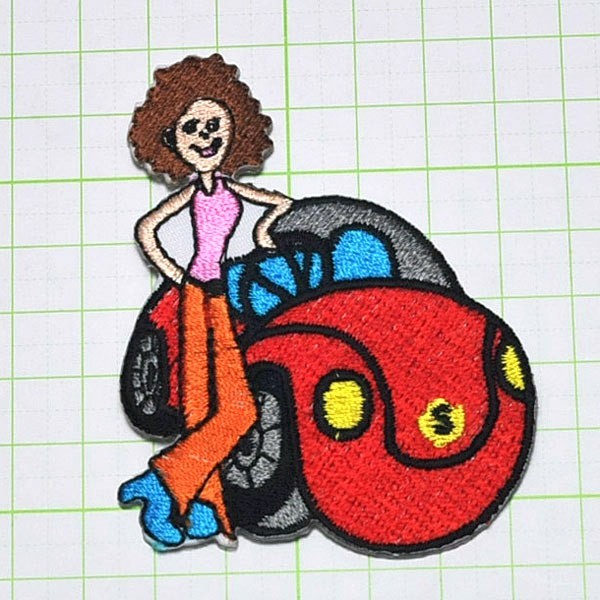アイロンワッペン・パッチ ヒッピーギャルと赤い車 zq