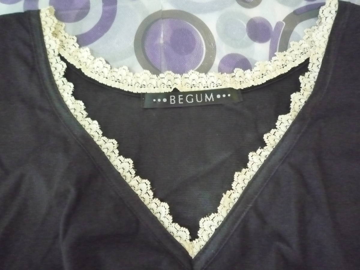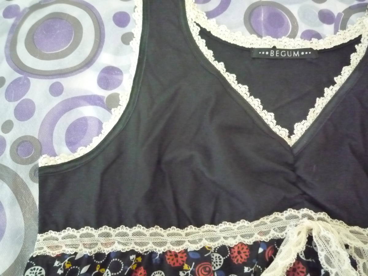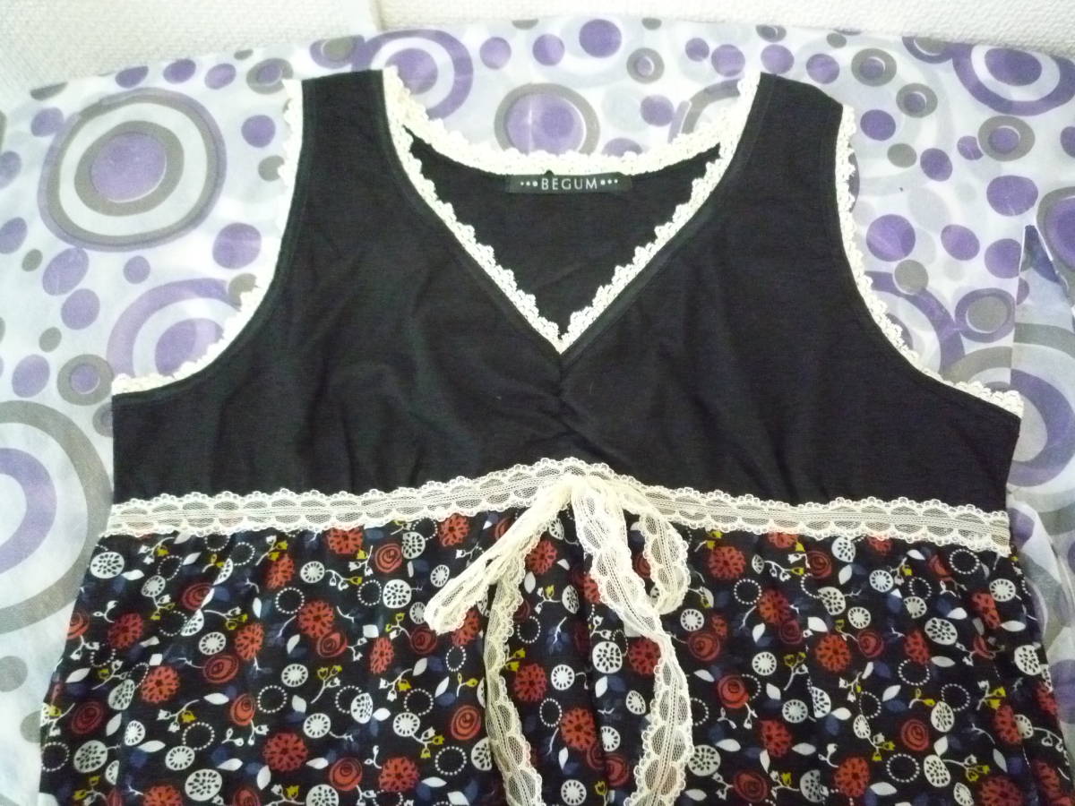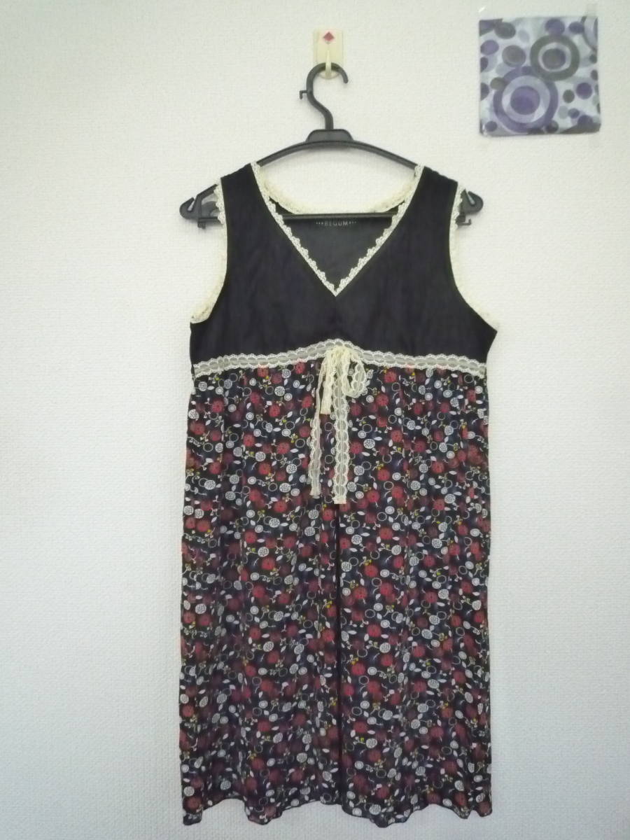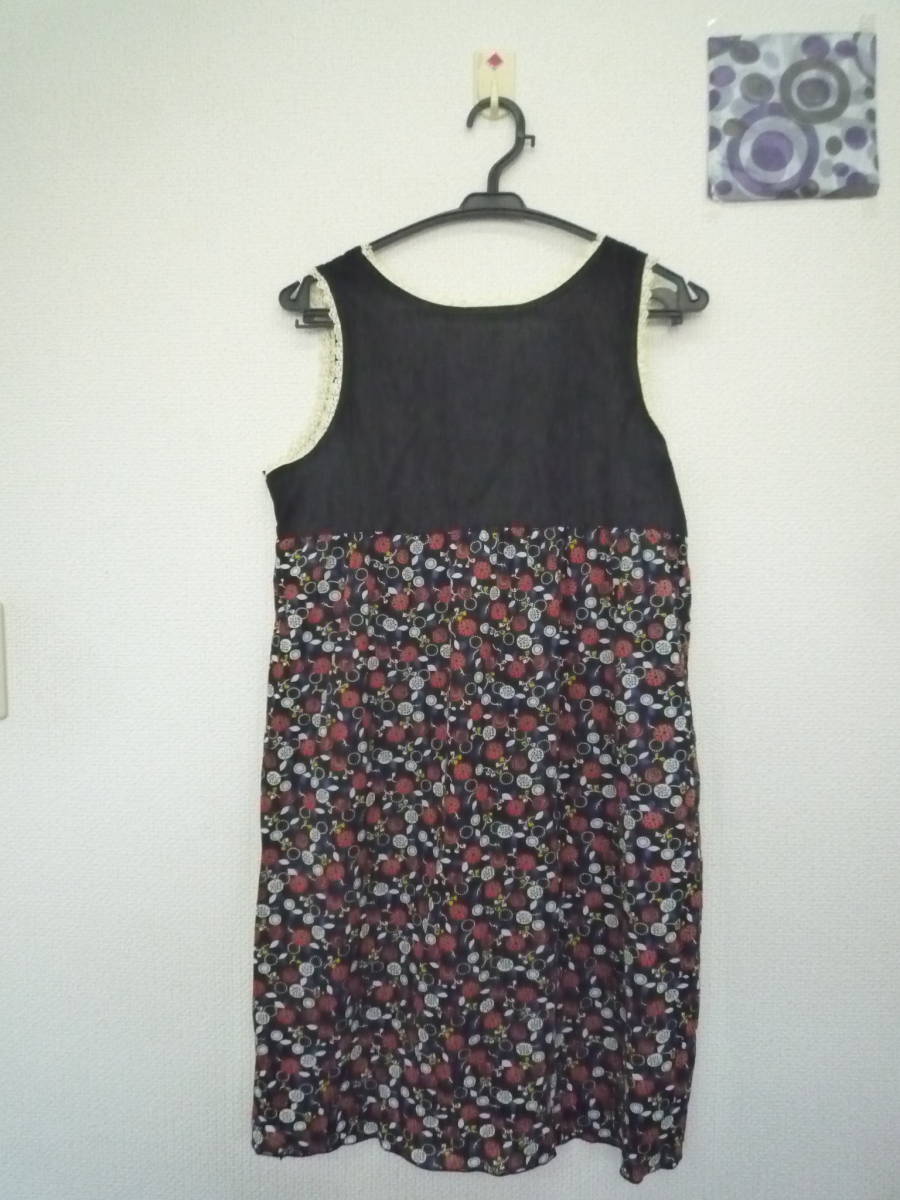 ★BEGUM ノースリーブチュニック ワンピ Vネック 透け感 黒×柄(L)