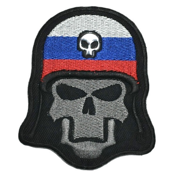 アイロンワッペン・パッチ ロシア国旗スカル ビス付 zq