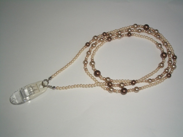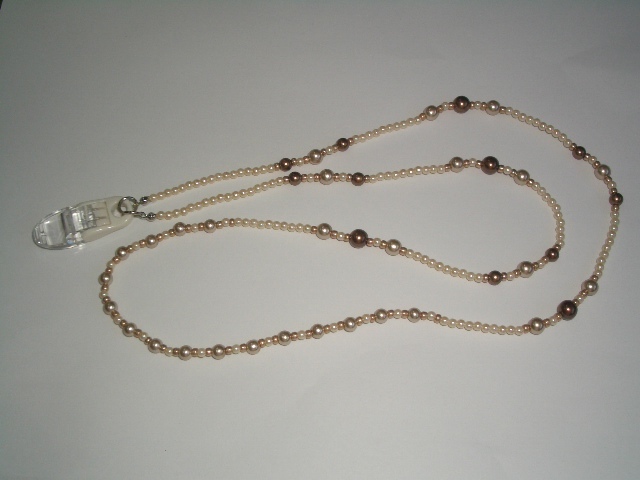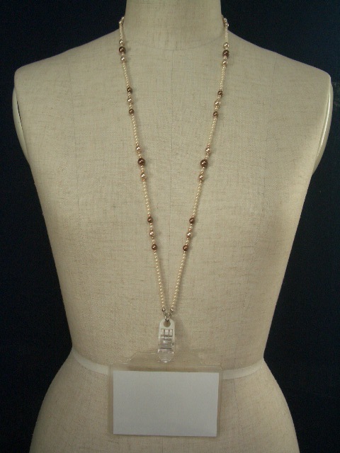ネームカード用のネックストラップと言えば細い布やヒモなどで出来たものが多いですが、このネックストラップはパール(イミテーション)やビーズ等で仕上げてりとても綺麗です。