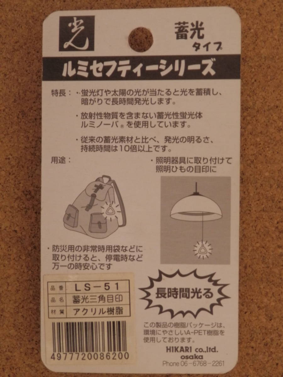 ③保管品新品★光 HIKARI ルミセフティー 長時間光る 蓄光三角目印 LS-51 | |||