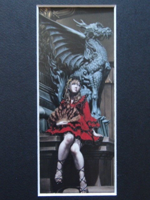 三嶋哲也【赤いドレスとドラゴン】希少画集画、状態良好、新品高級額装付、送料無料、洋画 油彩 人物