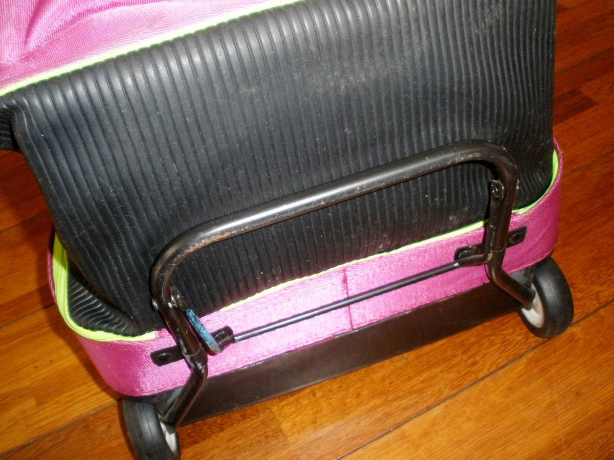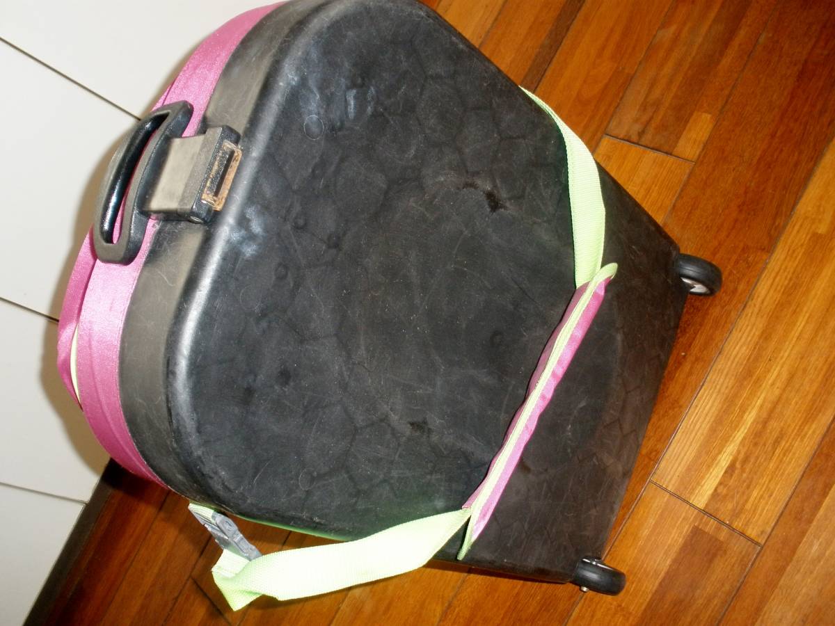 前面生地 背面樹脂のハーフトランクタイプで、コロコロで転がして移動できます。