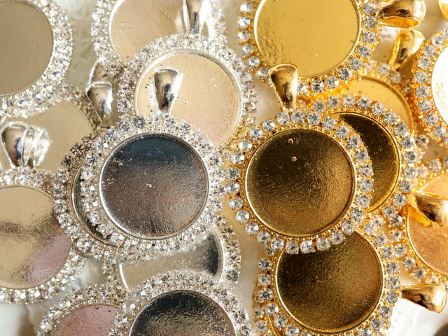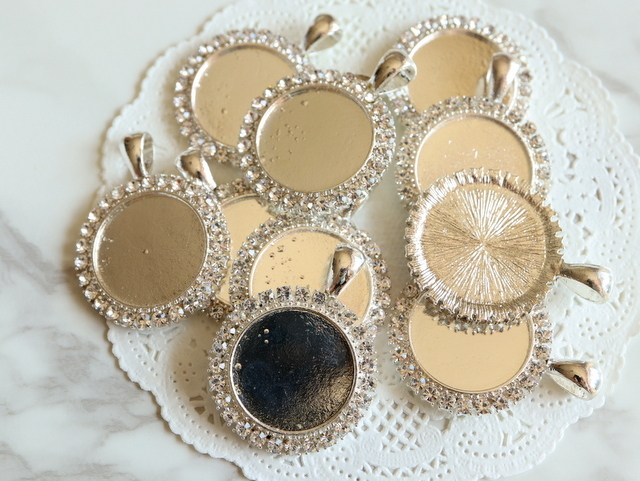 新品 レジン カメオ カボション バチカン付 セッティング ラインストーン シルバー ハンドメイド アクセサリー ペンダント パーツ 20mm 2個