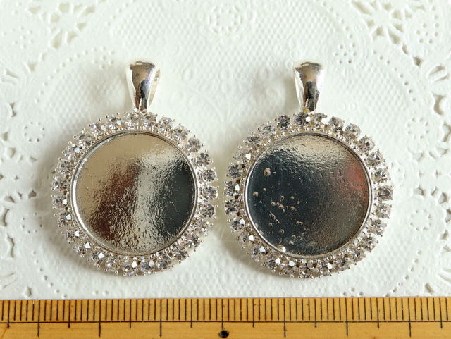 +--- バチカン付き セッティング ラインストーン シルバー 20mm 2個 ---+