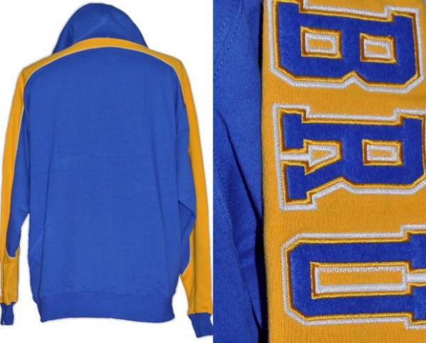 チームカラーのブルー×イエローの2トーンカラー、ラグランデザインのUCLA(カリフォルニア大LA校)のパーカーです。