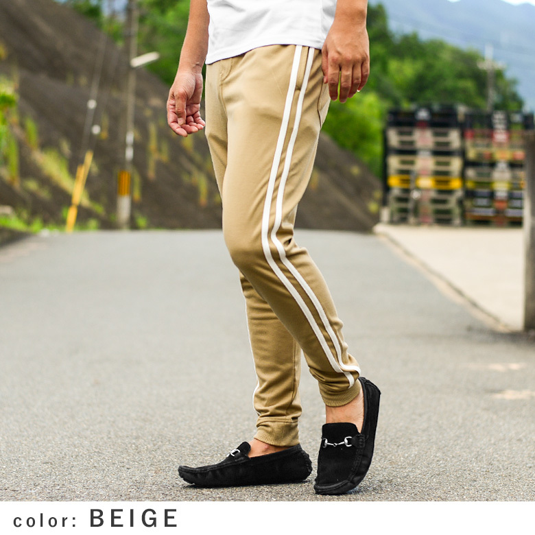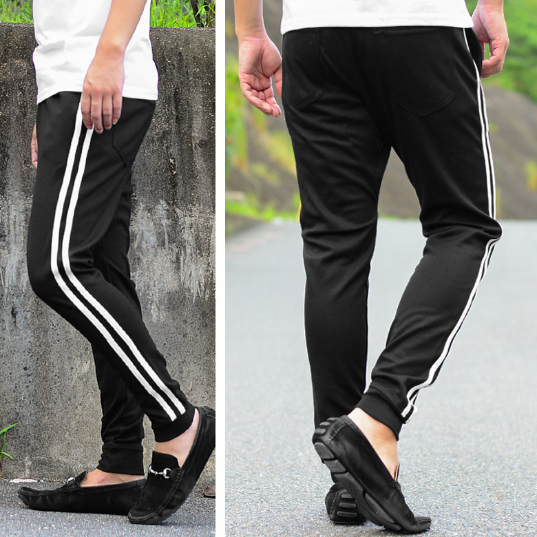 サイドのラインは美脚効果を演出し、裾が絞れたジョガーパンツタイプとなっており、