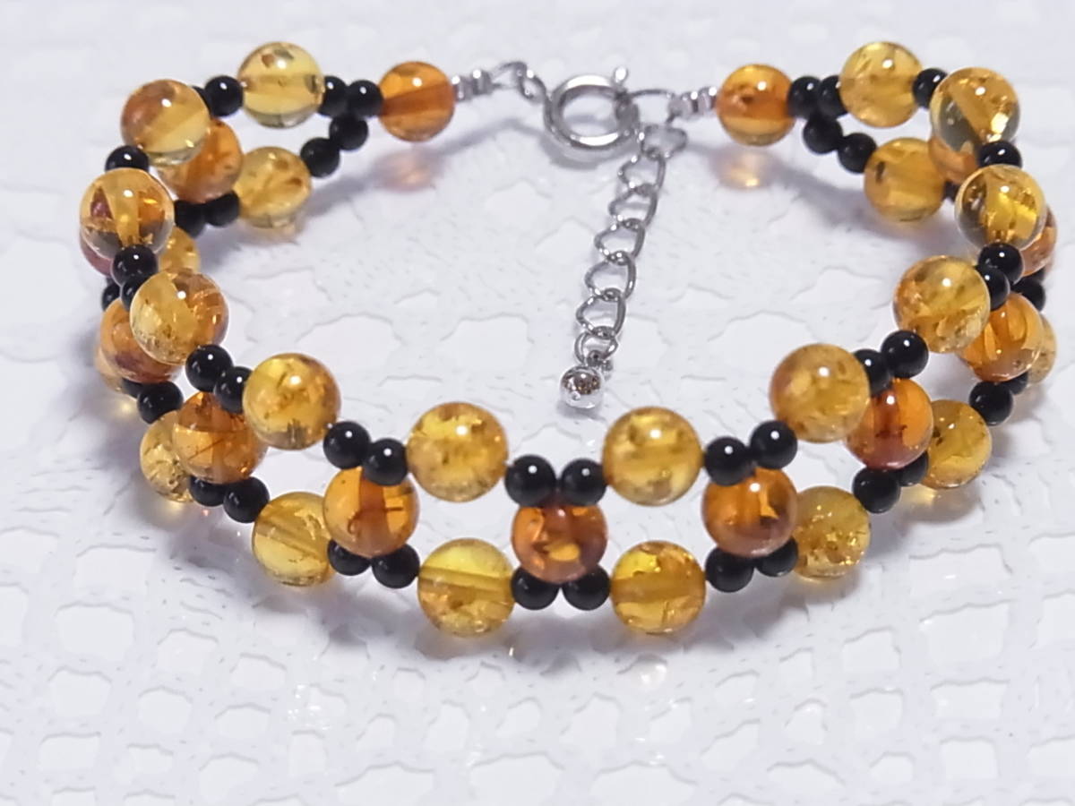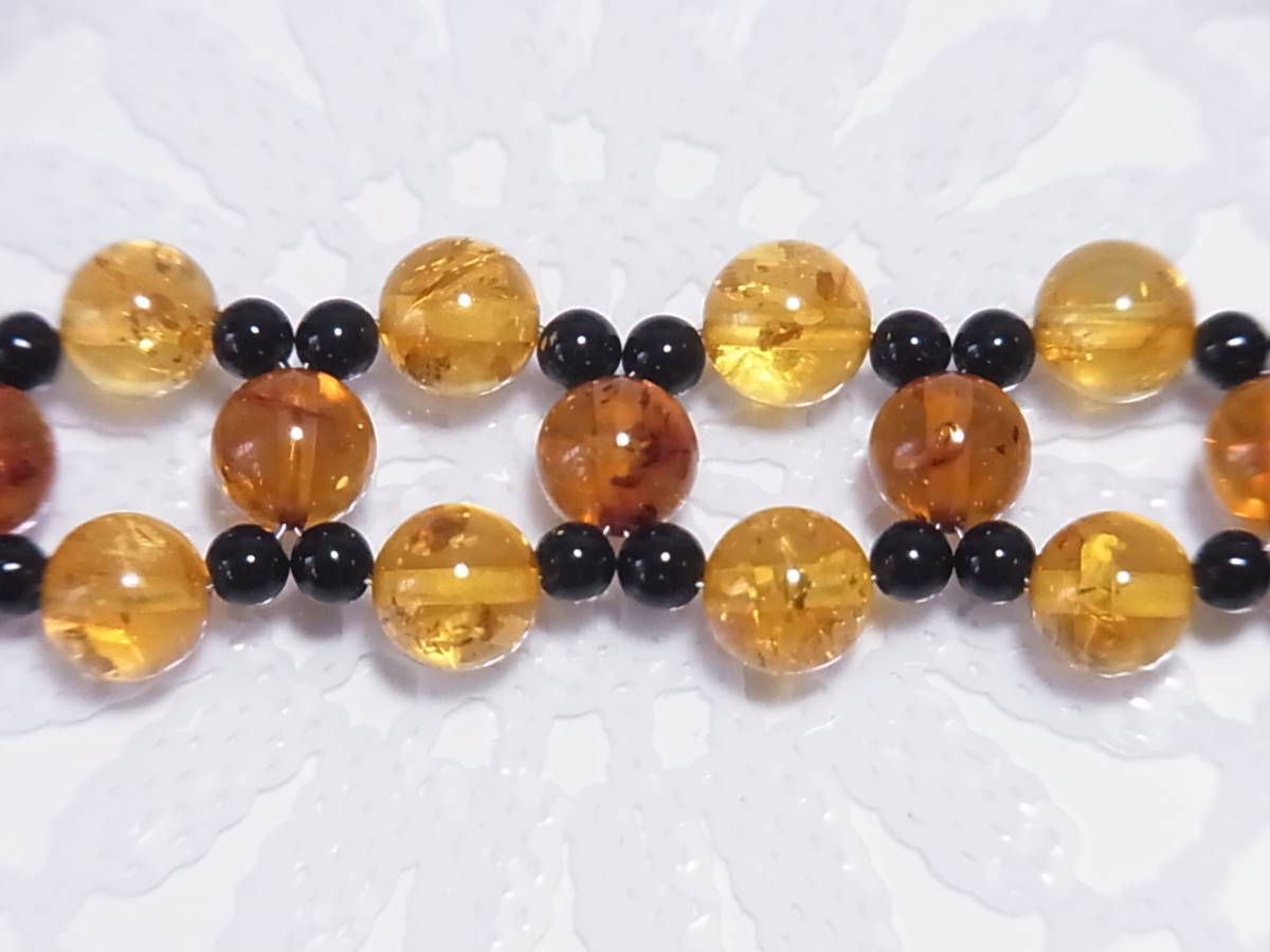 【数量限定販売になります】 琥珀は、模造品や再生琥珀等の天然琥珀ではない琥珀が多く出回っていますが、鑑別機関の最高峰 「中央宝石研究所」 で鑑別をして、間違いない商品を供給してくれる、信用できるサプライヤーから仕入れをしています。 近年、産出量が激減し、値段が高騰しております。また産出国の輸出規制等によって、日本への輸入量も激減しています。 使用石 : 天然琥珀 約6mm 天然琥珀特有のグリッターには、個体差があります。 天然ブラック・カルセドニー(染色処理) 約3mm 内周 : 約16+3cm 最大幅 : 約1.6cm 引き輪式 アジャスター約5cm 真鍮製(ロジウム・コーティング) コーティングステンレスワイヤー使用 【備考】 誠に勝手ながら、土、日曜日、祝日、長期休暇は、 発送業務をお休みさせていただいておりますので、ご了承下さい。 画像はサンプル画像ですが、サンプル画像と遜色のない商品をお送りします。 出来るだけ実物に近い画像を使っておりますが、実物と多少色が異なる場合がありますので、ご了承下さい。 環境に配慮して、必要以上の梱包をしておりませんのでご理解下さい。 基本的にはチャック袋等に商品を入れ、緩衝材で壊れないように保護してお送り致します。 プレゼント梱包はご対応しておりませんので、ご了承下さい。 スムーズなお取り引きを心掛けておりますが、仕事の都合上、ご返信、発送等に 多少お時間を頂く場合もあるかと思いますが、ご理解の程、よろしくお願いします。 ノークレーム、ノーリターンでお願い致します。 | |||