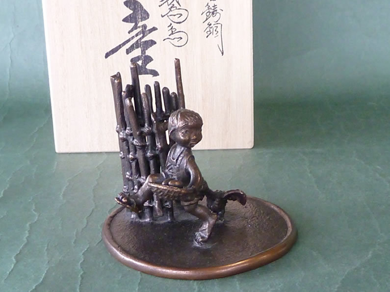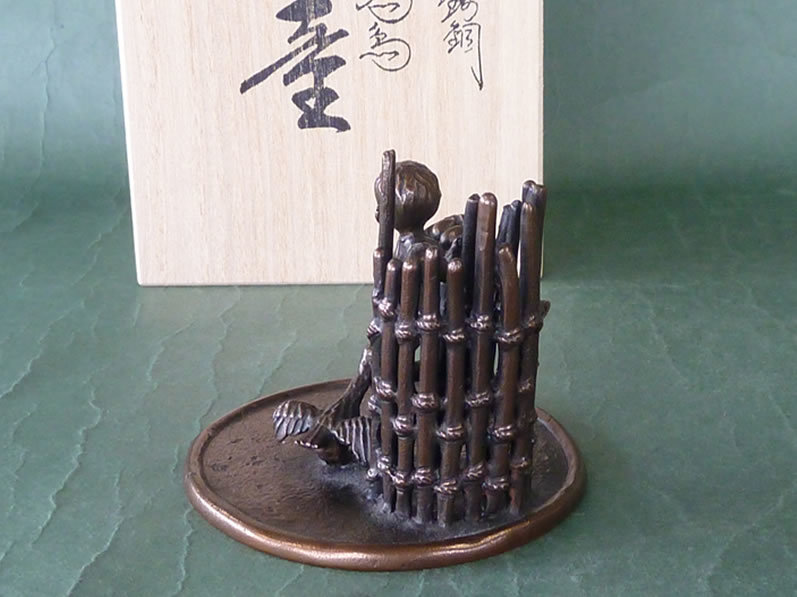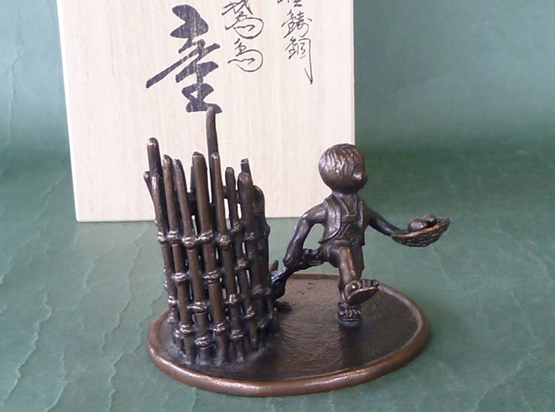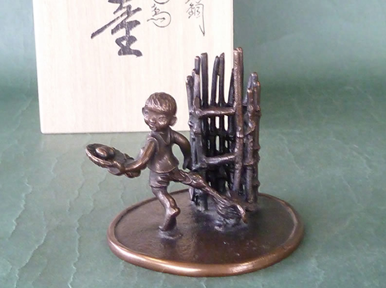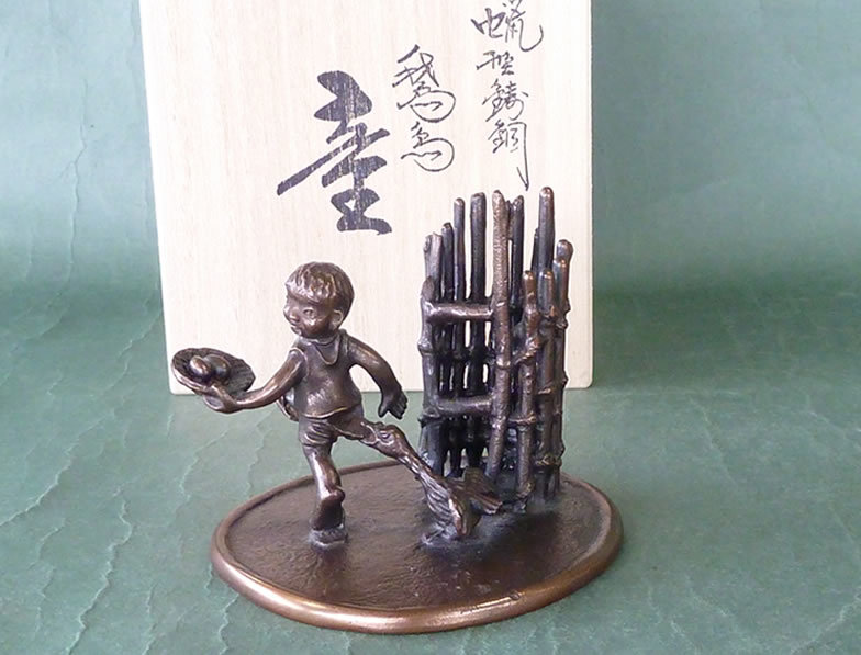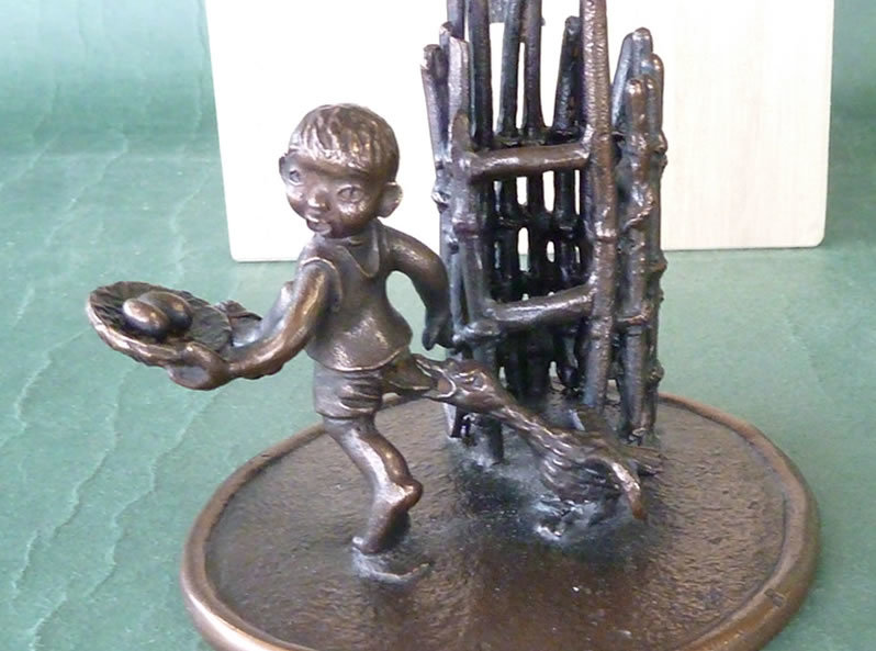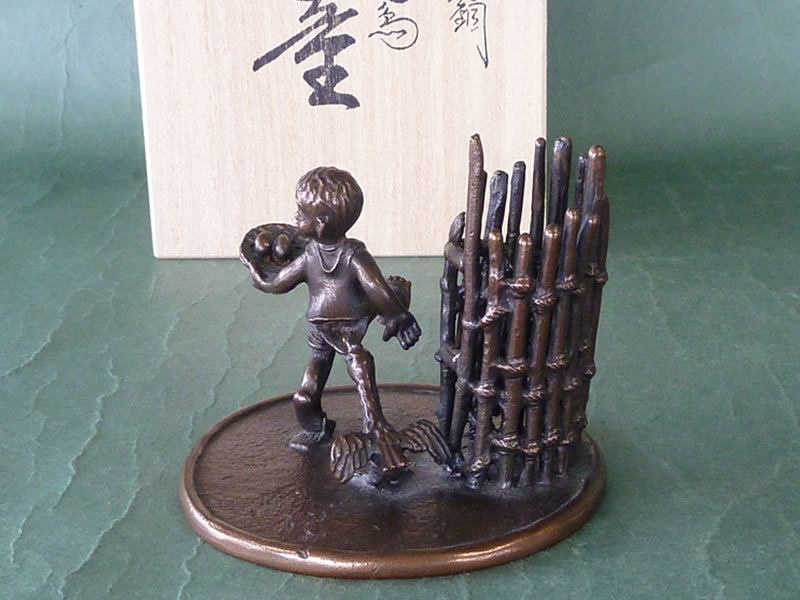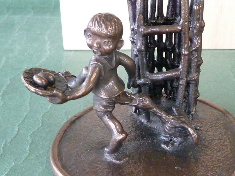 ペン立て 童とがちょうのたまご 蝋型青銅製 新品