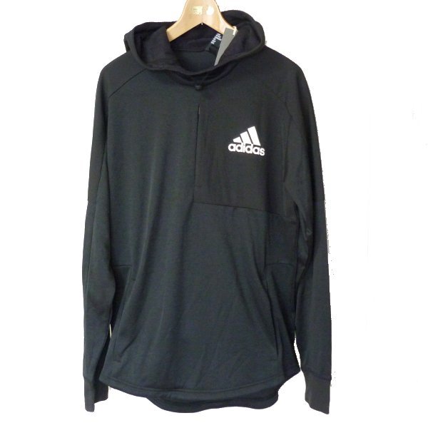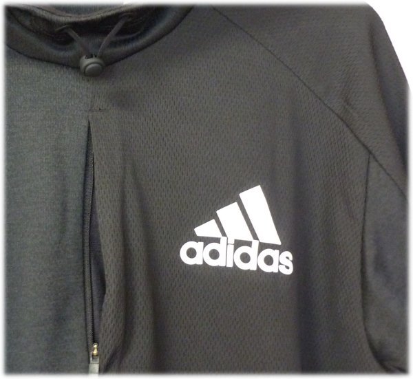 新品L★定価7540円アディダス 黒チームイシュー薄手メンズパーカー/メッシュ生地/adidasブラック