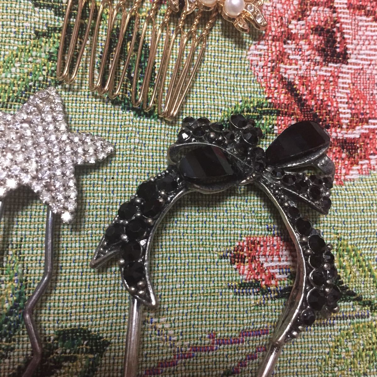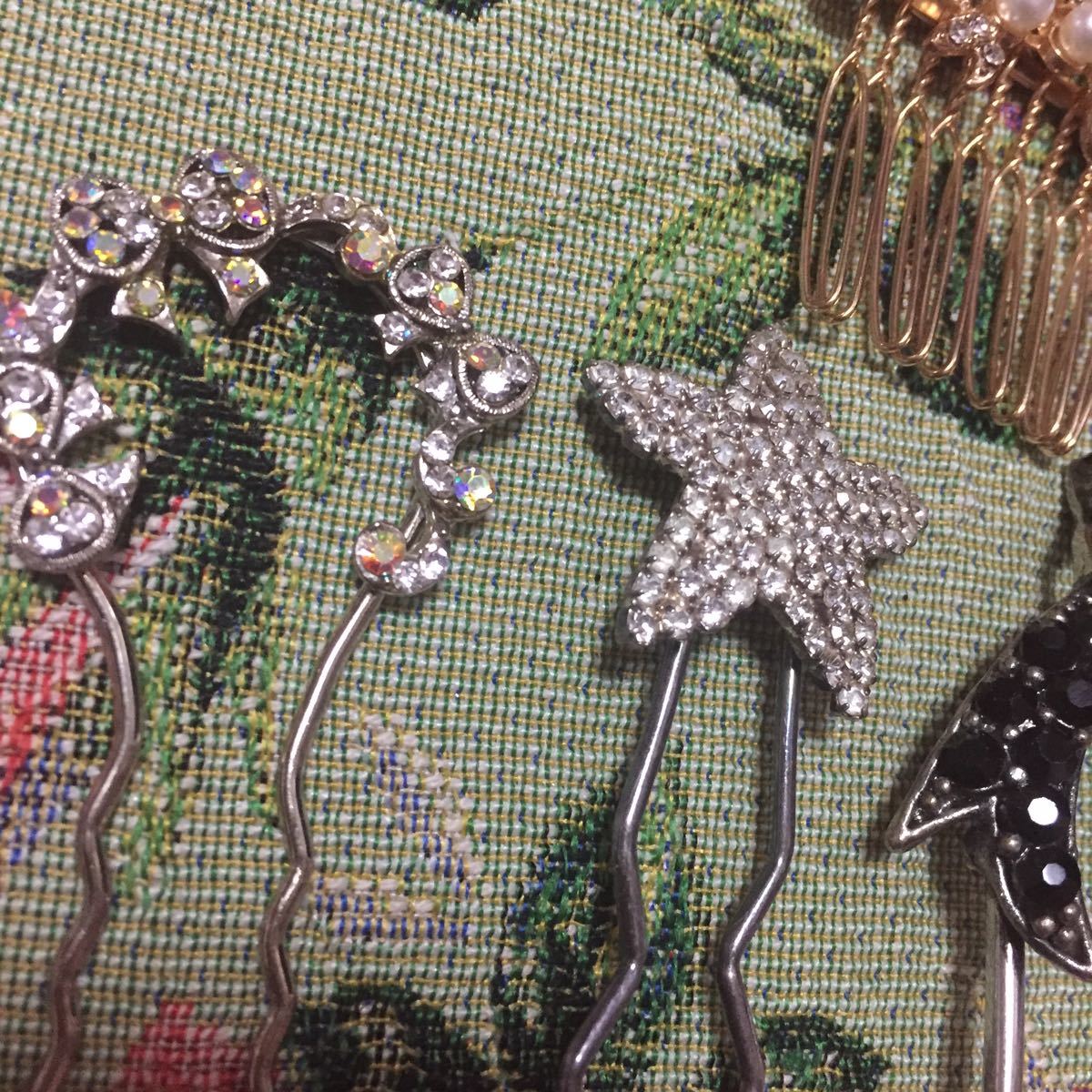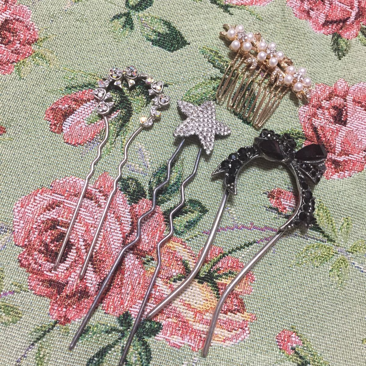 ヘアスティック、コームの4個セット 夜会巻き 洋風かんざし ビジュー ヘアアクセサリー