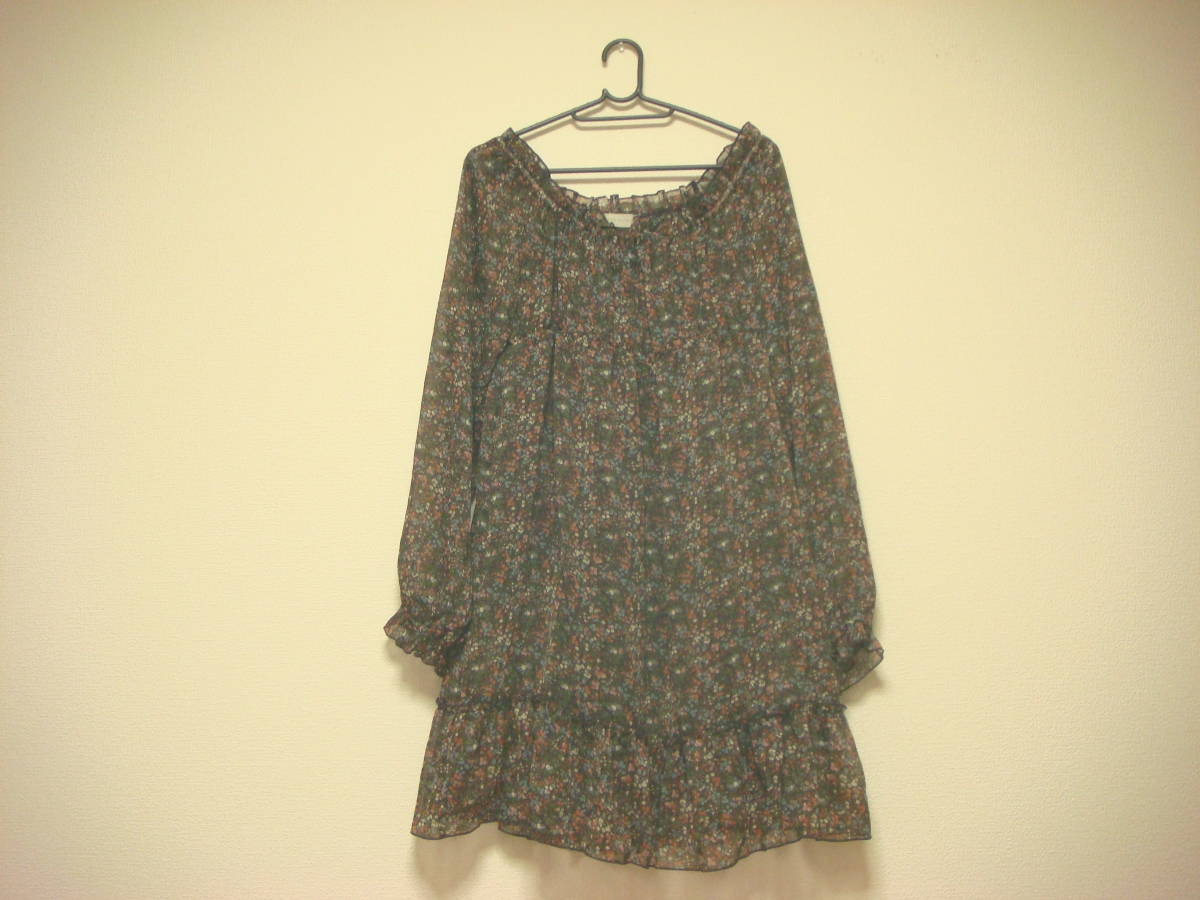オリーブデオリーブ 小花柄 オフショルダーデザイン ワンピース 美品 茶