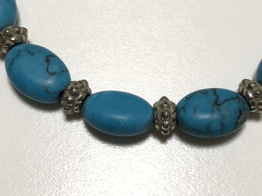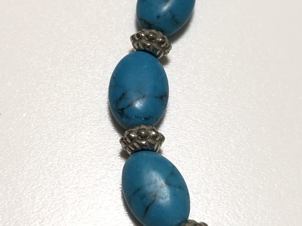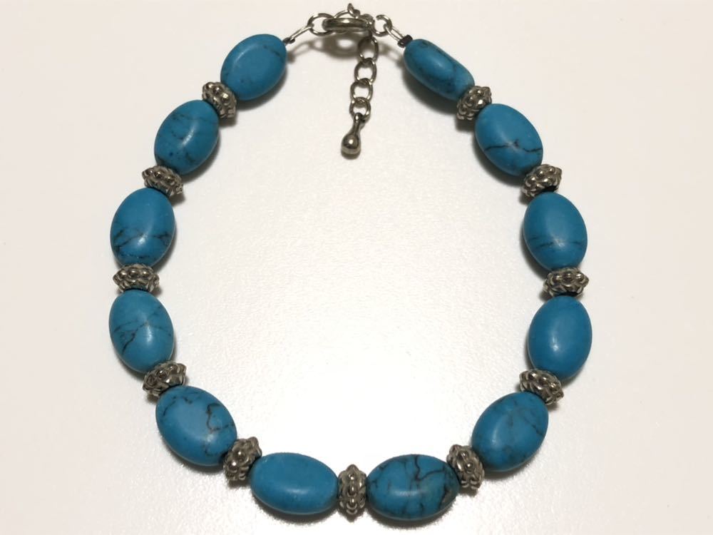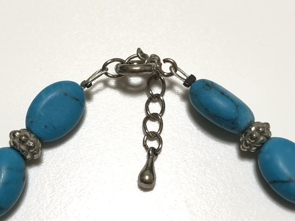 ターコイズ風(樹脂)に仕上げた、オーバルデザインのブレスレットです。長さ調節可能、状態良好です。