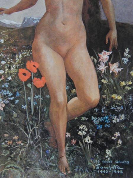 藤田嗣治、図録・レゾネ一部の作品、希少、図録画集の中の一枚の作品です。作品の状態は年代ものですが綺麗です。