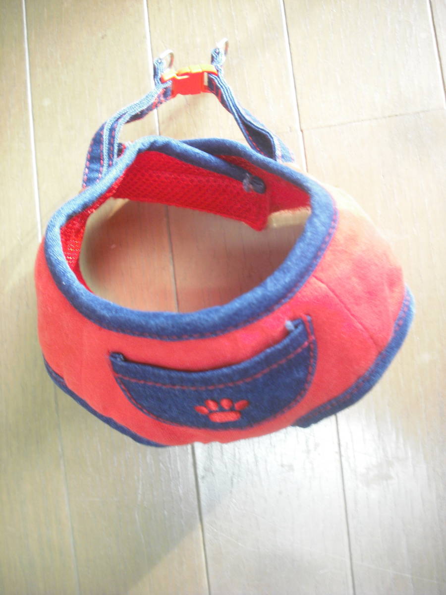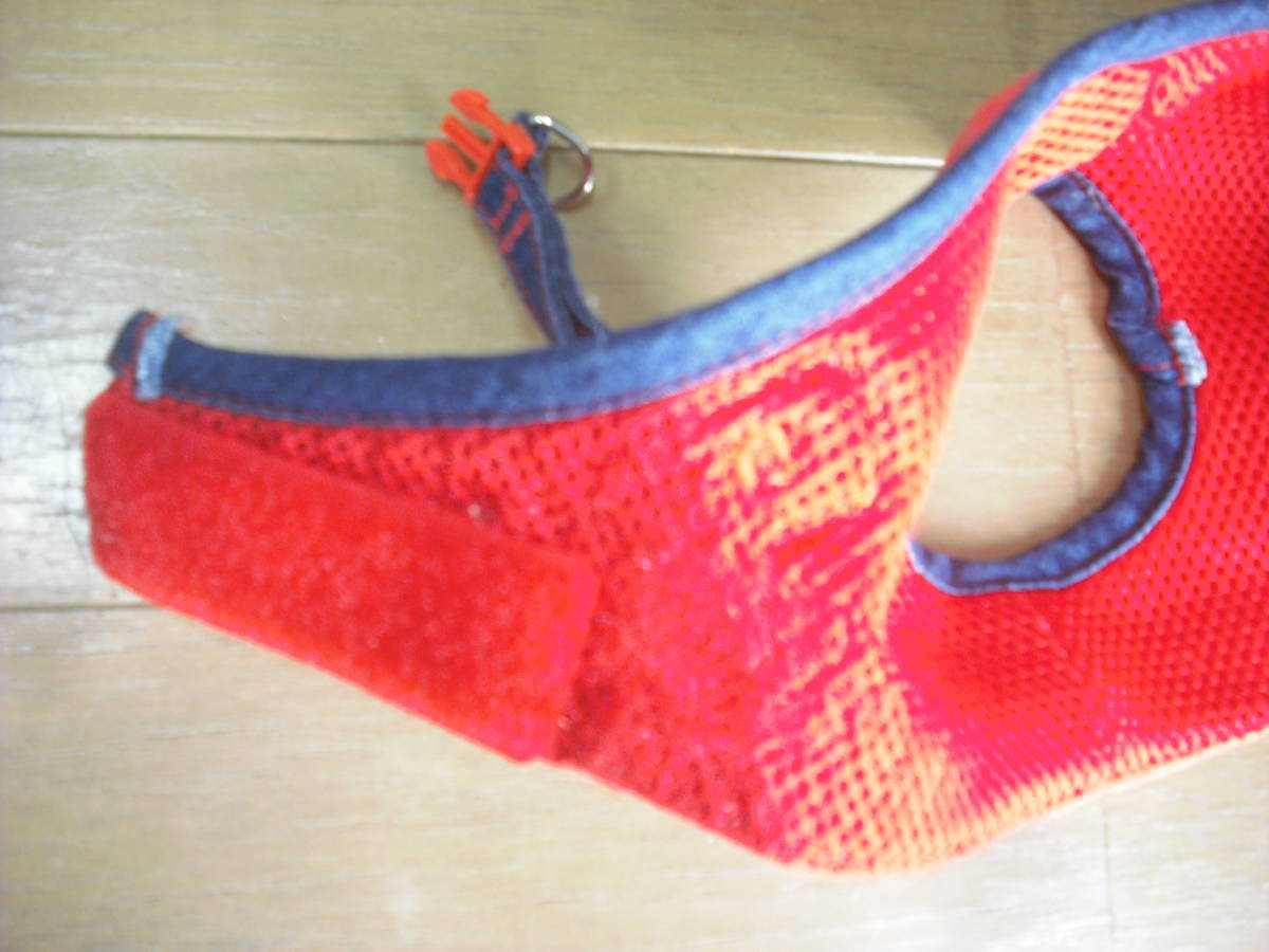 写真のような胴輪になります。 マジックテープ式とプラスティック製の留め具で固定。 サイズはSSM 素材表示等は見つけられませんでした。 写真一枚目の状態で巻尺で測って、おおまかですが・・・胴周り41cm、首回り37cm位の大きさです。 ベルトに調整機能はなくマジックテープ部分のみの調整になります。 ずらすとマジックテープが見えるか、布が余るので調整はできない感じです。 私見ですが…お色は赤っぽいです。 襟や袖はネイビーっぽいです。 襟や袖のネイビー部分が色落ちしている部位も見受けられます。 個人所有になりますので汚れやスレなどの痛みもございます。 現状でよろしくお願いします。 約58g 簡易包装の規格内の定形外郵便100gかレターパックライトで発送予定です。 |