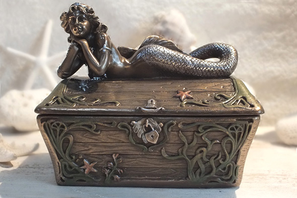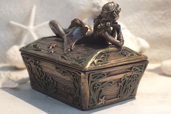 海に沈む宝箱に模られた美しい幻想的なマーメイド(人魚)の装飾ボックス♪