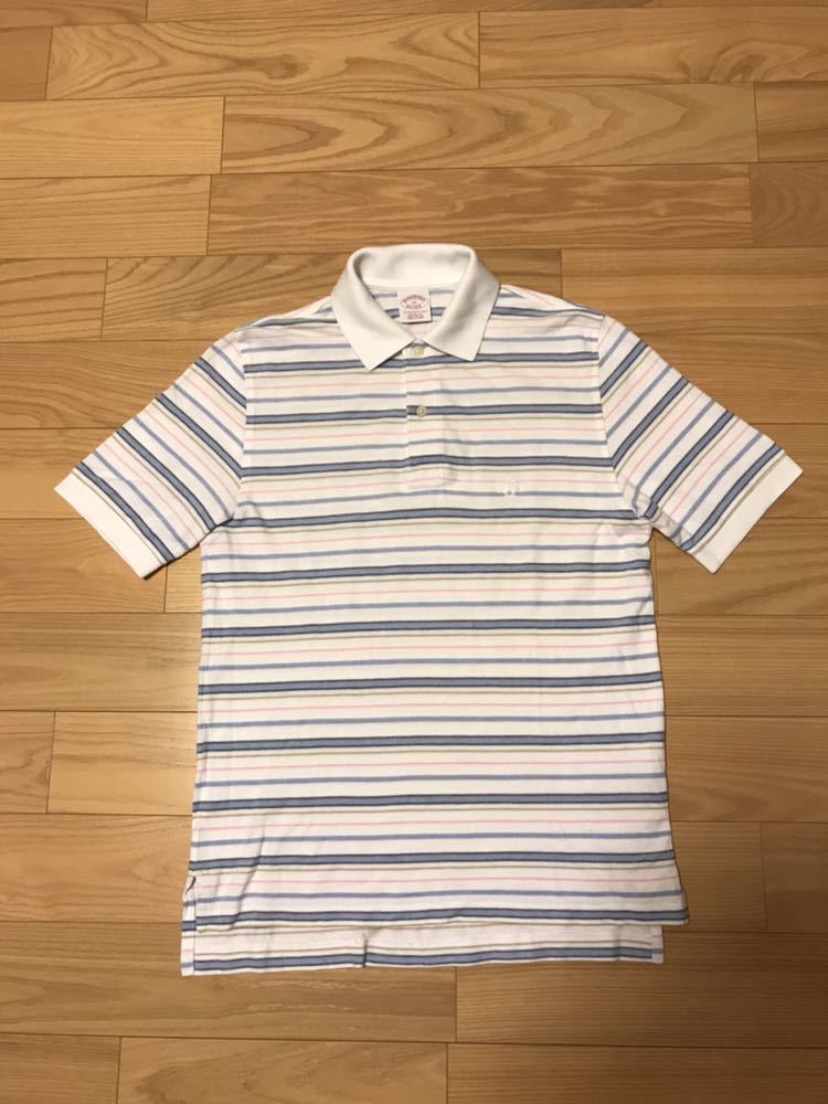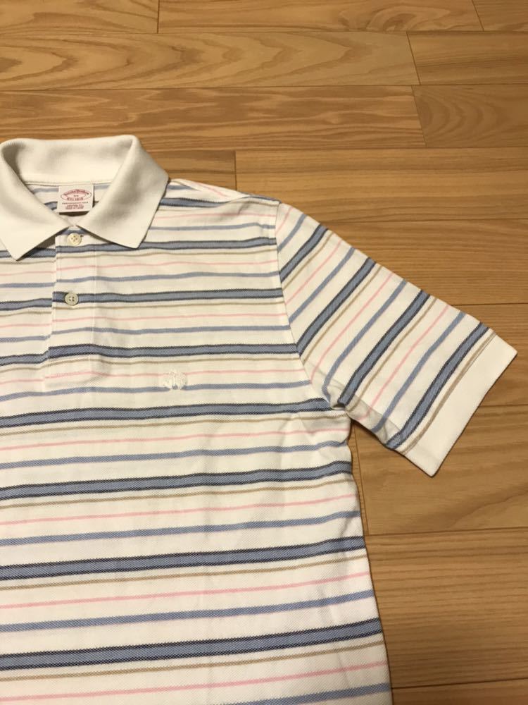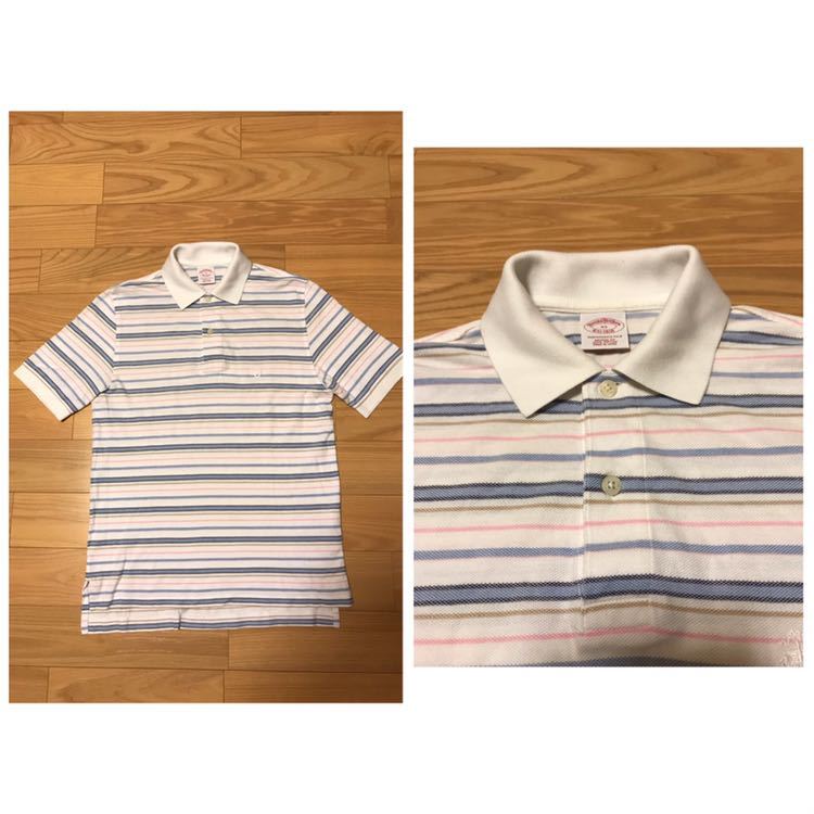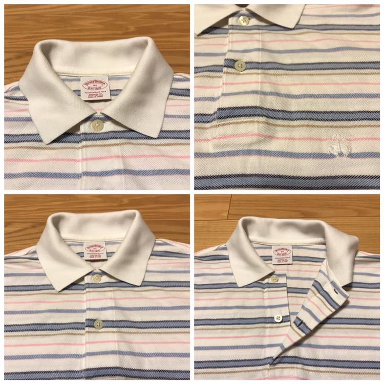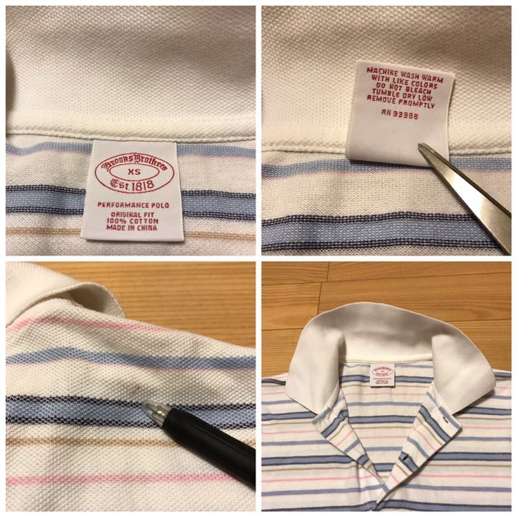 良品☆ブルックスブラザーズ1818/PERFORMANCE POLO サイズXS大き目 半袖鹿の子ポロシャツ オリジナルフィット ワンポイント&マルチボーダー