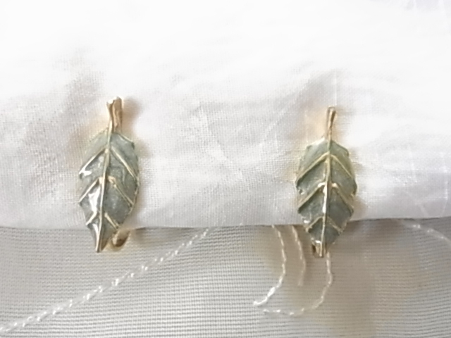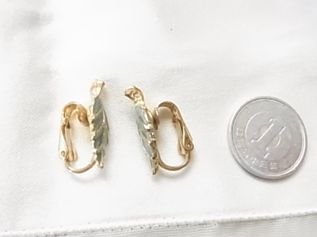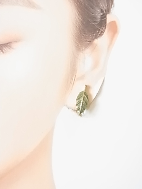 リーフモチーフ 葉っぱ 葉 ピスタチオグリーン系のカラーデザイン 上品な印象のイヤリング◆