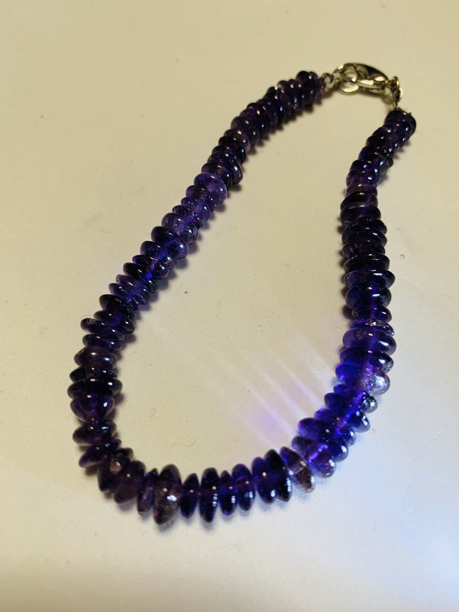 アメジストの小さな玉で、作成されている、珍しいブレスレッドです、やわらかで使いやすい、素敵なブレスレッドです、長さは21センチです