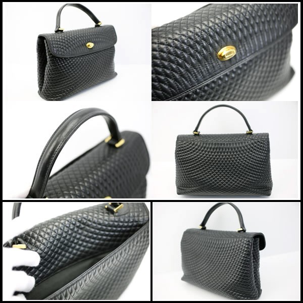その他商品説明 | スイス発祥の歴史ある一流ファッションブランド“バリー”より、レザーハンドバッグのご紹介です。上質で柔らかな手触りのブラックレザーを素材に使用し、全体に施された繊細なキルティング加工が大変印象的な、エレガントな雰囲気のハンドバッグです。正面にさり気なくデザインされたブランドロゴ入りのターンロック金具が、高級感をより一層演出しています。バッグ内部は、間仕切りで2つにセパレートされており、荷物の整理・収納に便利で、大変実用的です。デイリーユースはもちろん、シンプルで落ち着きのある上品なデザインなので、行事などのフォーマルな場面にもお勧めの一品です。この機会に是非ご検討下さい。 状態:バッグ底部には、角擦れが多少見られます。フラップ部分の表面に若干のシワが見られ、縁部分に多少の擦れが見られます。ターンロック金具・ゴールド金具には、小傷が多少見られます。バッグ内部は、フラップ内側に若干の小傷と当たり痕が見られる程度で、きれいな状態です。全体的に見て判断すれば、状態は大変良いです。ランクAにつき、自信を持ってお勧めします。 |