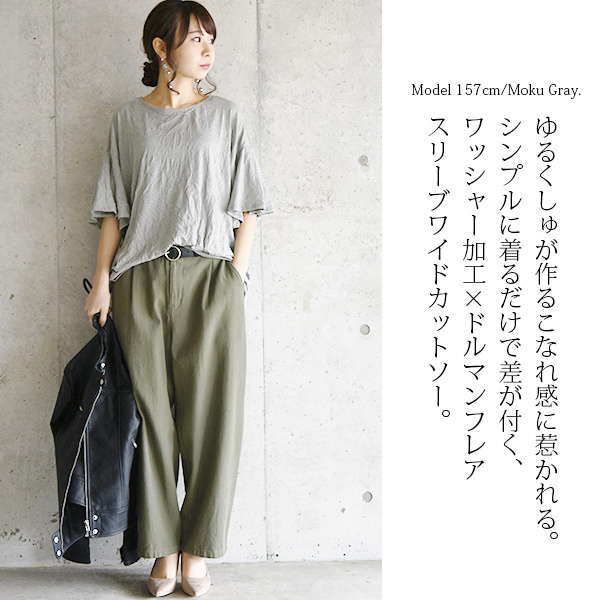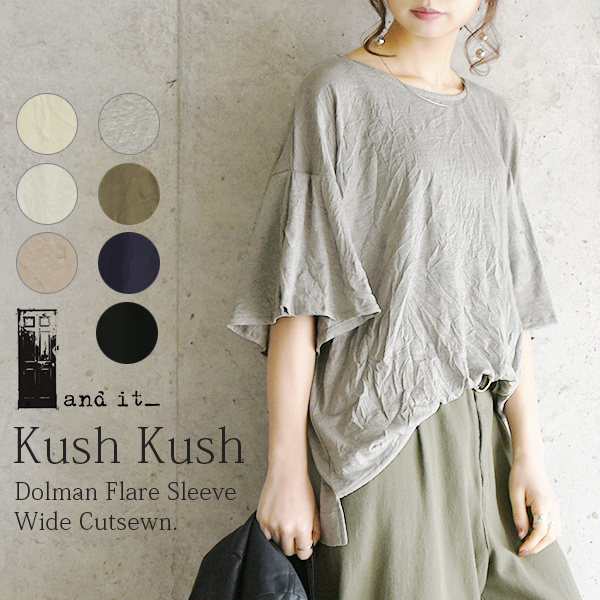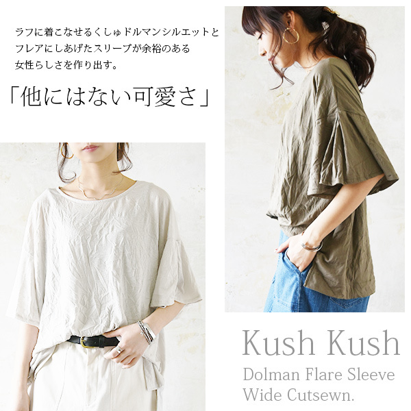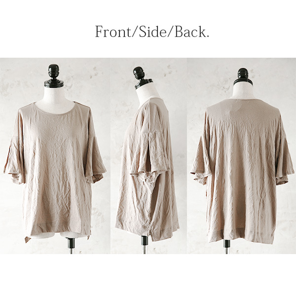 着丈:(前)約59cm(後ろ)約62cm、バスト:約120cm、肩幅:約53cm、袖丈:約17cm、アームホール:約40cm、ネック:(幅)約20cm、(深さ)約7.5cm、袖口:約72cm、裾幅:約59cm
