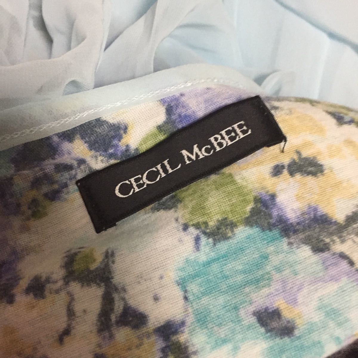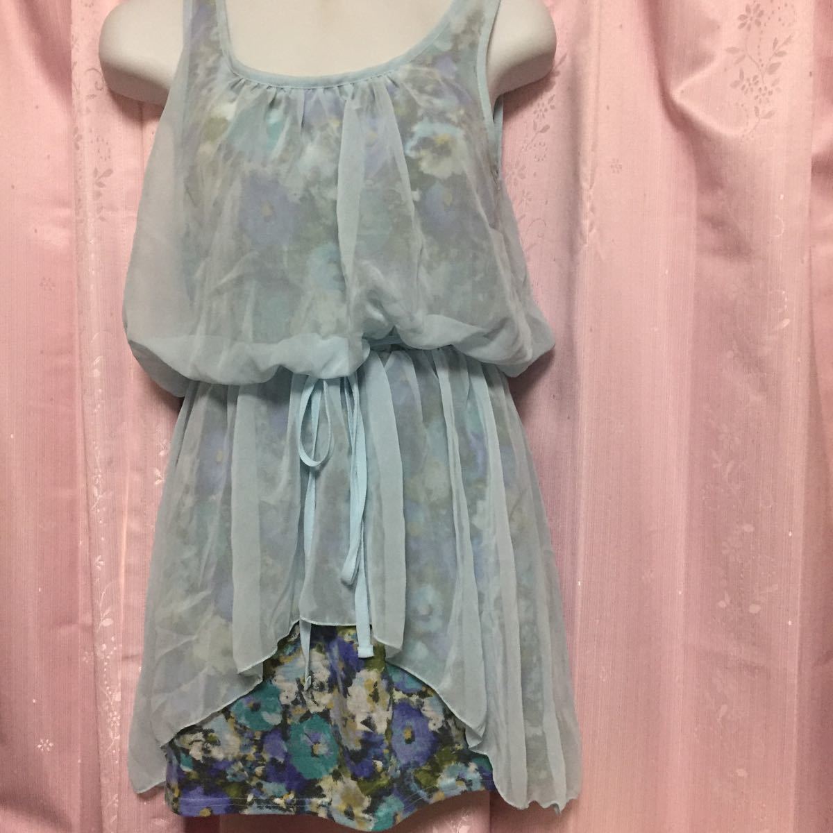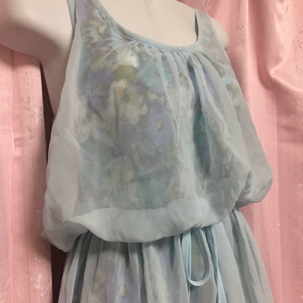 セシルマクビーCECILMcBEE 花柄ミニワンピース ふわふわシフォン 裏地有り ノースリーブ 水色 春夏