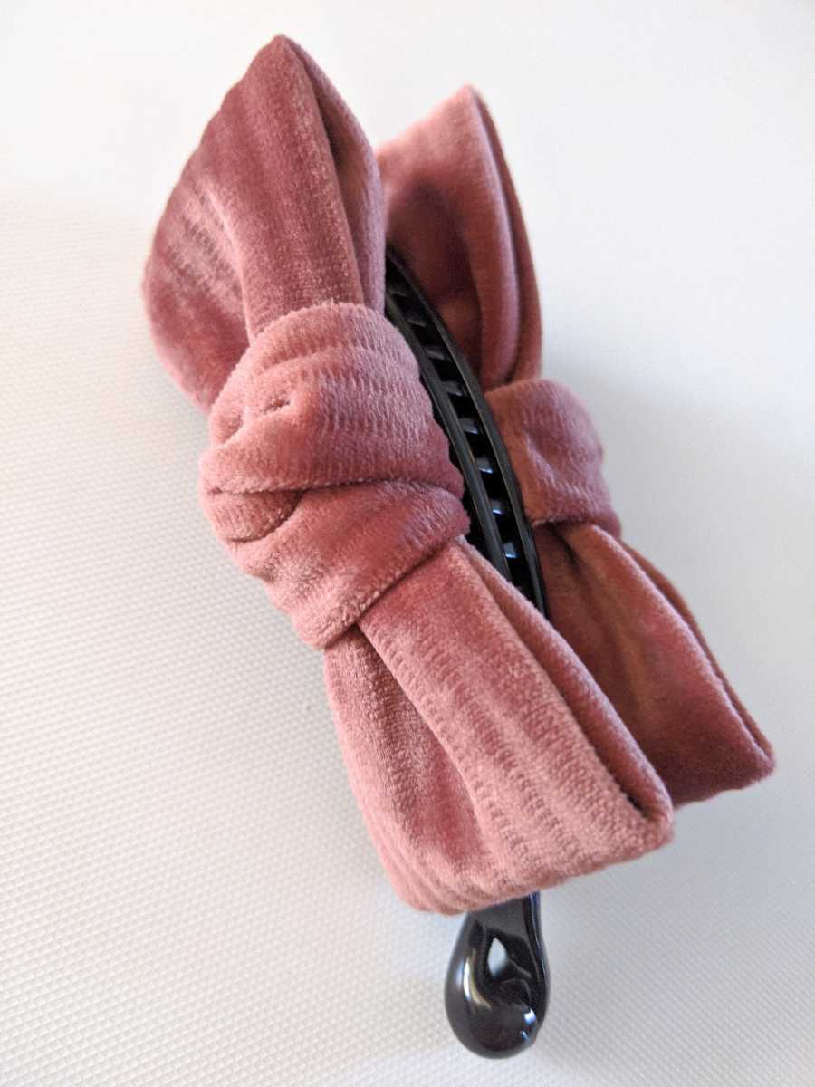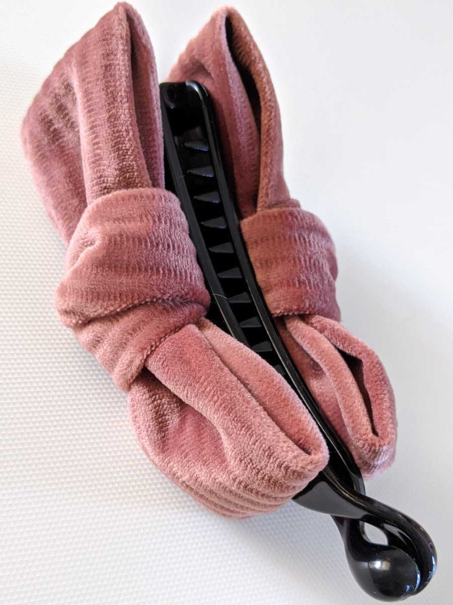 こちらは、ピンク リボン ベロア素材 バナナクリップ になります♪