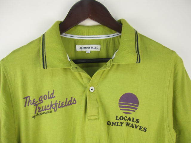 エアロポステール AEROPOSTALE ポロシャツ 半袖 コットン L 黄緑 メンズ E375
