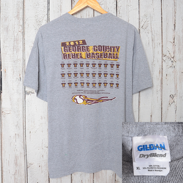 ST1979 ジルダン george county rebel baseball Tシャツ XL 肩62 2012 野球 メール便可 xq