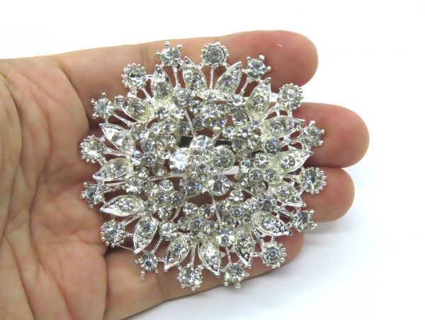 人気のラインストーン、ゴージャスブローチ!日本国内より安心発送。 大きさ 直径約7cm!