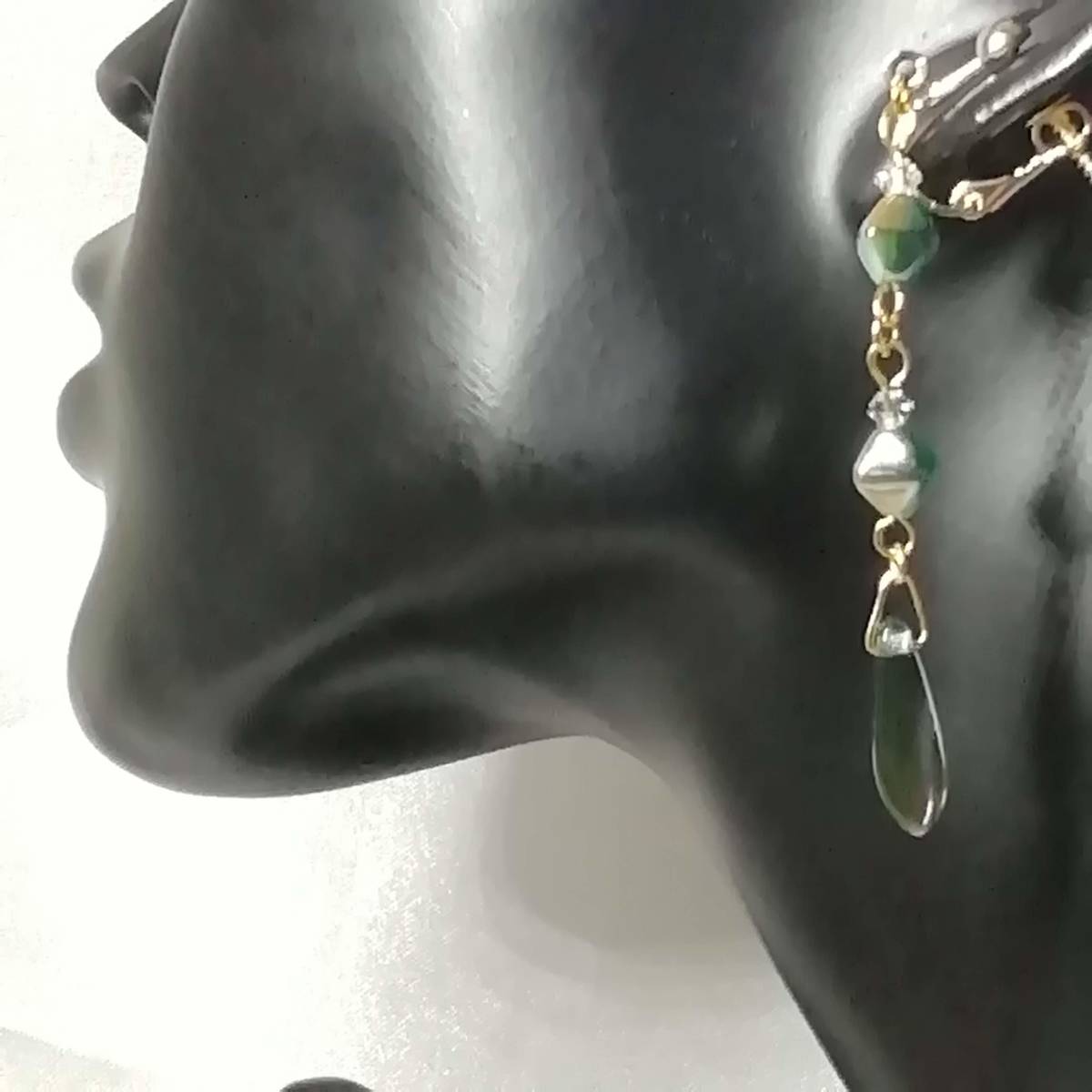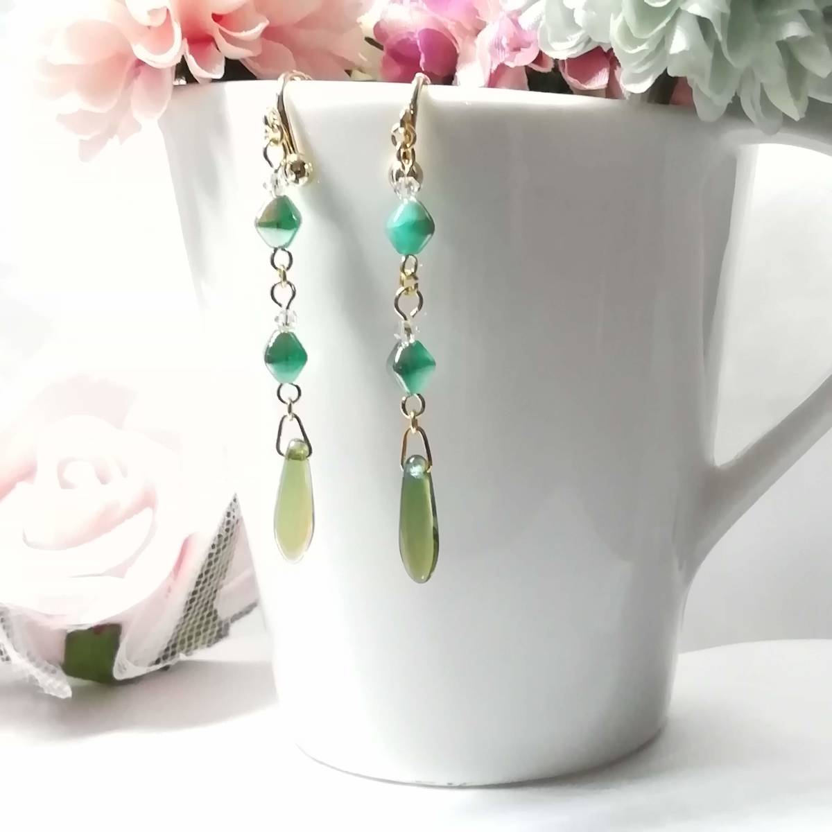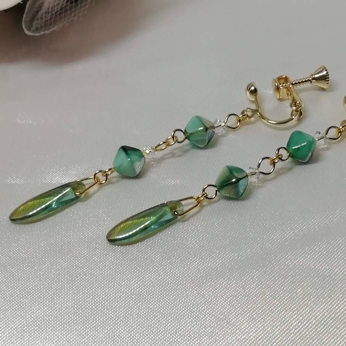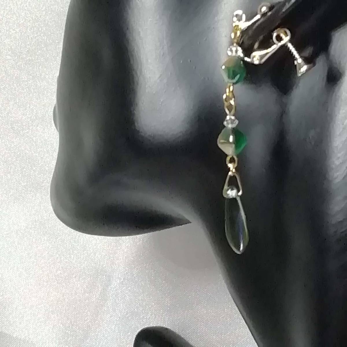 | ★商品内容★ チェコビーズグリーンマーブルとアクアマリンセルシアンダガーのハンドメイドイヤリング★上品/ゴールド/ダガー/グリーン/チェコ/クリスタル グリーンノートのダガービーズと、 グリーンマーブルの爽やかな色合いのイヤリングです。*・.**.☆・。**.・**. 吊る下げたビーズが襟元で良く揺れて 優雅で優しい女性らしさを印象付けるひと品です*・.**.☆・。**.・*・**。・ シンプルなデザインで、普段使いはもちろん、 お洒落のワンポイントにも最適です*・**.☆・。**.・**。 【素材】 チェコビーズダイヤ型グリーンマーブル6mm チェコビーズダガーアクアマリンセルシアン(チェコ産)16mmx5mm スワロフスキー5328クリスタル(オーストリア製)3mm 小粒チェーンゴールド カンより垂れ下がる長さは、約5.3㎝です。 Eー704 ★注意事項★ ***~ご購入前に必ずお読み下さい~*** *・*・*落札後について*・*・* *落札後4日以内にお手続き、ご連絡が無い場合は落札者都合で削除致します。 *発送日指定・ご入金の予定が1週間以上先をお考えの方は、入札の前に質問よりご連絡くださいませ。 予めご了承の上、ノークレーム・ノーリターンでお願い致します。 *・*・*商品について*・*・* *一点一点心を込めて作っておりますが、手作りなため多少の歪み等あるかもしれません。 手作りの味わいと、世界で一つだけの作品とお考えいただければ幸いです。 *デリケートな商品ですので、強く引っ張ったりすると破損する事もあります。 お取り扱いにはご注意ください。 *ご覧のPC、スマホによっては画像と実物の色味が多少異なる場合があります。 *基本イヤリング金具は跳ね上げネジ付き金具にて作成しております。 **ご希望によりピアスへの変更も承っております。 【フックピアス…無料/キャッチピアス…別途追加料金120円が必要です。】 *その他…樹脂ノンホールピアス(無料)・カン付き樹脂ノンホールピアス(別途追加料金20円が必要です。)にも変更をお受け致します。 ~ご注文の際にメッセージ欄よりお申し付け下さい~ 尚、金具変更のご希望が無い場合は、掲載された写真の金具にてお送り致します。 *金属アレルギーや化学物質アレルギーなどへの対応はしておりませんので、ご心配な方はご遠慮下さいますようお願い致します。 *永くご愛用頂くために、ご使用後は柔らかい布等で軽く拭いてください。 *・*・*プレゼント用梱包のご要望もお受けいたします*・*・* *その際は、梱包費用が別途で必要となりますのでご注意ください。 また、ご希望の梱包タイプによって、発送方法が変わりますので、送料が別途必要となります。 プレゼント用梱包タイプ 【袋→100円】 発送方法【クリックポスト(送料無料)】 プレゼント用梱包タイプ 【箱→200円】 発送方法【レターパックプラス(別途520円)】 袋タイプは【合計100円の追加料金が必要です。】、箱タイプは【合計720円の追加料金が必要です。】となります。 ◆ご希望の場合は、必ず商品ページをウォッチリストに登録した上で落札前に質問にてお問合せ下さい。◆ ◆ご希望を承り次第、一度出品を取り消し、プレゼント用梱包費用、送料などを追加した金額へ変更し、再出品致します。◆ *再出品後に再度検索して頂く手間が省けますため、プレゼント梱包をご希望の場合は必ずウォッチリストへのご登録をお願い致します。 金額変更後の再出品から3日以内に落札されなかった場合、誠に勝手ながら購入する意思がないとみなしまして、元の金額へ修正致します。 また、修正後、再度プレゼント用梱包のご希望のお問い合わせを頂きましても、お断りをさせていただきますのでご注意ください。 ご不明な点がございましたら、落札前に質問よりお願い致します。 ***ご質問について*** *ご購入前にお願い致します。 日中は仕事をしておりますので、ご返事が直ぐに出来ない場合がございます。 出来る限り早い対応を心がけますが、ご了承ください。 また、発送までには、お振込み確認後、翌日の発送を心がけておりますが、仕事の都合により2~3日程かかる場合がございます。(その際にはナビにてご連絡いたします) お急ぎの場合は、極力対応いたしますが、場合によっては対応致しかねる事もあります。ご了承下さいませ。 | |||