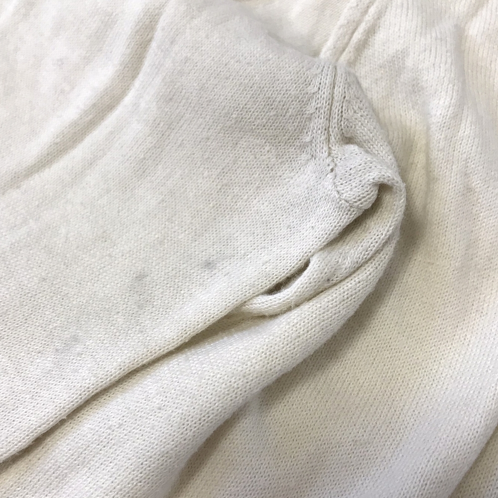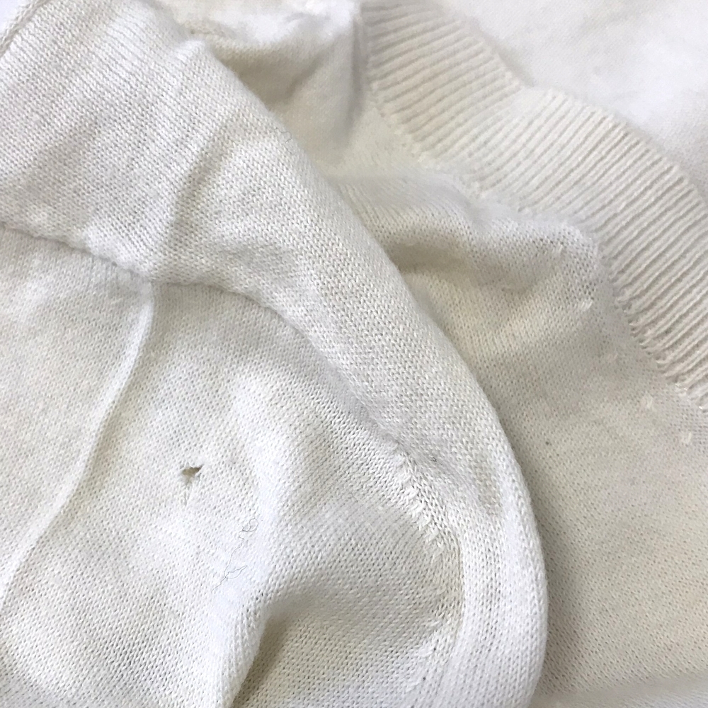 袖口・脇に薄い小染み、右肩に5mmほどの小穴、目立ちませんが細かな毛羽立ちなど若干の使用感です